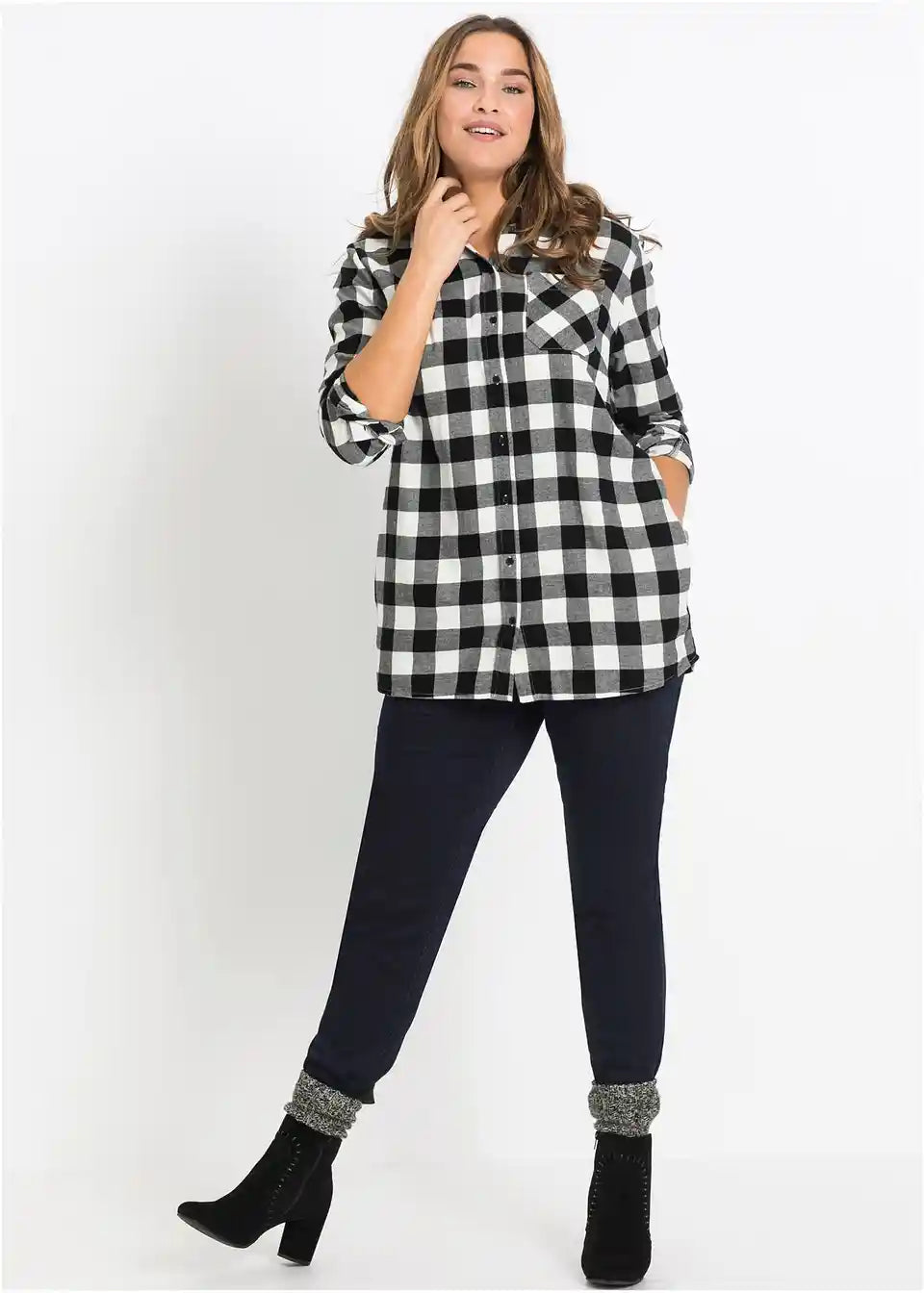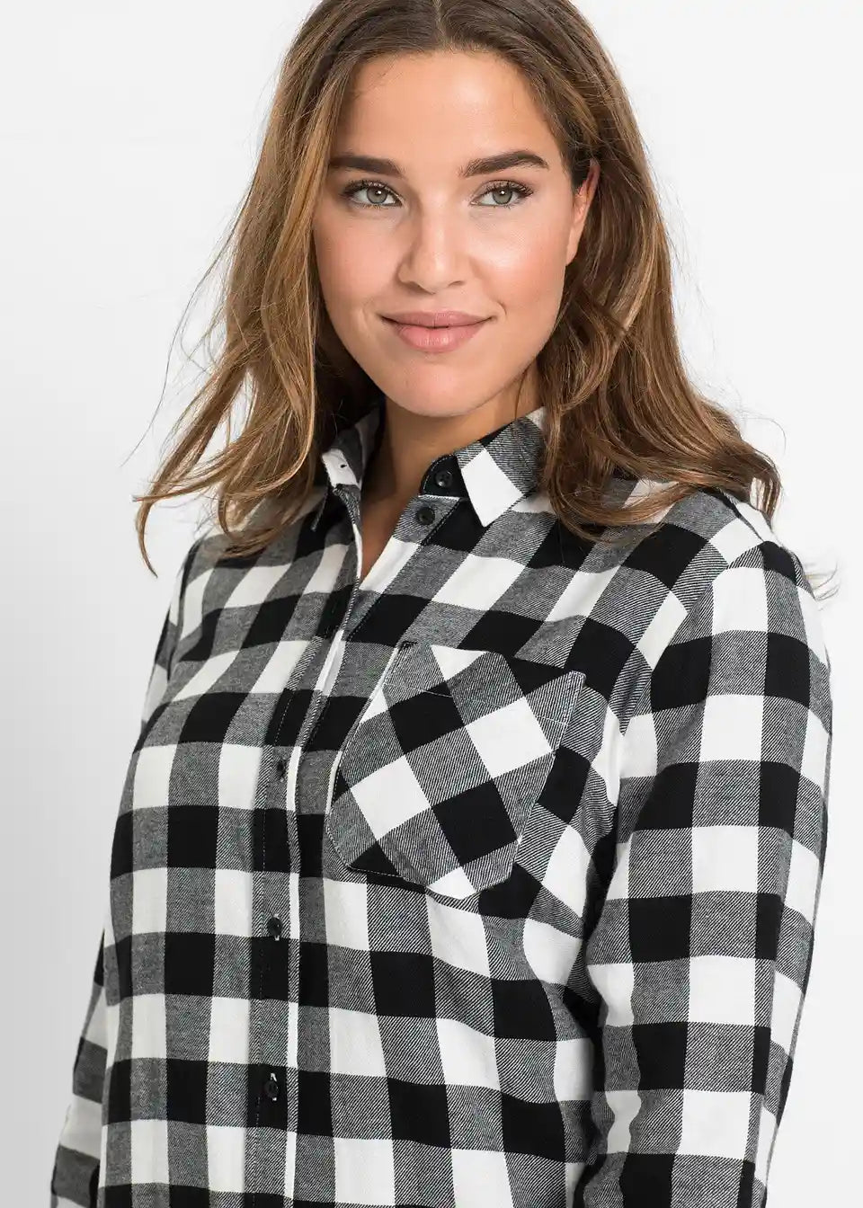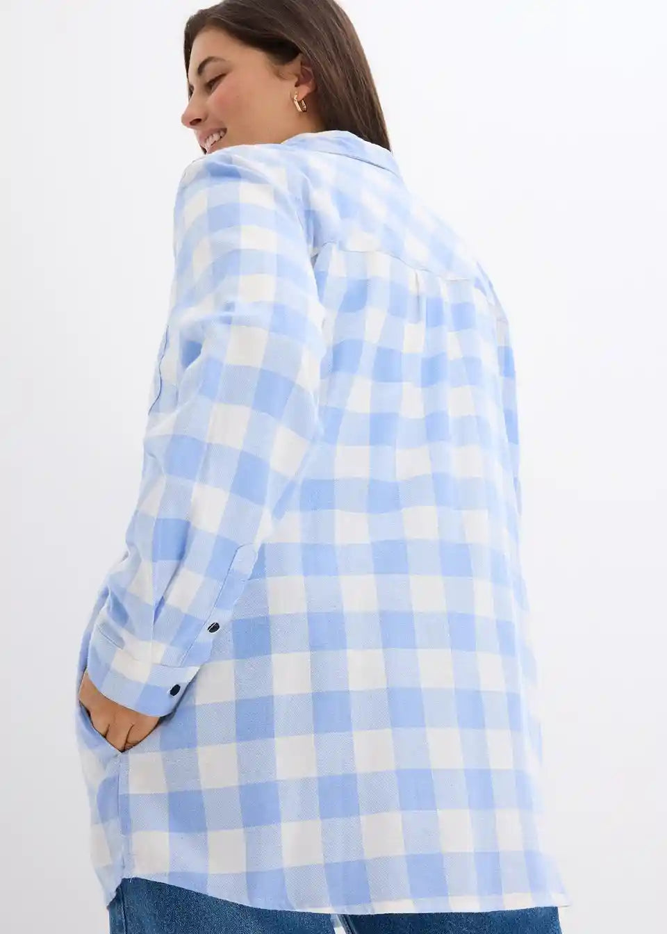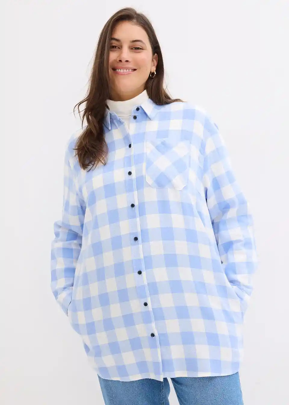 Ova bluza dugih rukava brenda John Baner pruža ženama moderan izgled. Odlikuje se mekom flanelskom tkaninom i privlačnim kariranim uzorkom. Model se ističe dugim krojem i blago zaobljenim rubom. Flanel duga bluza ima ležeran kroj i može se zakopčati s gumbima. Jedan džep na prsima zaokružuje opušteni dizajn.