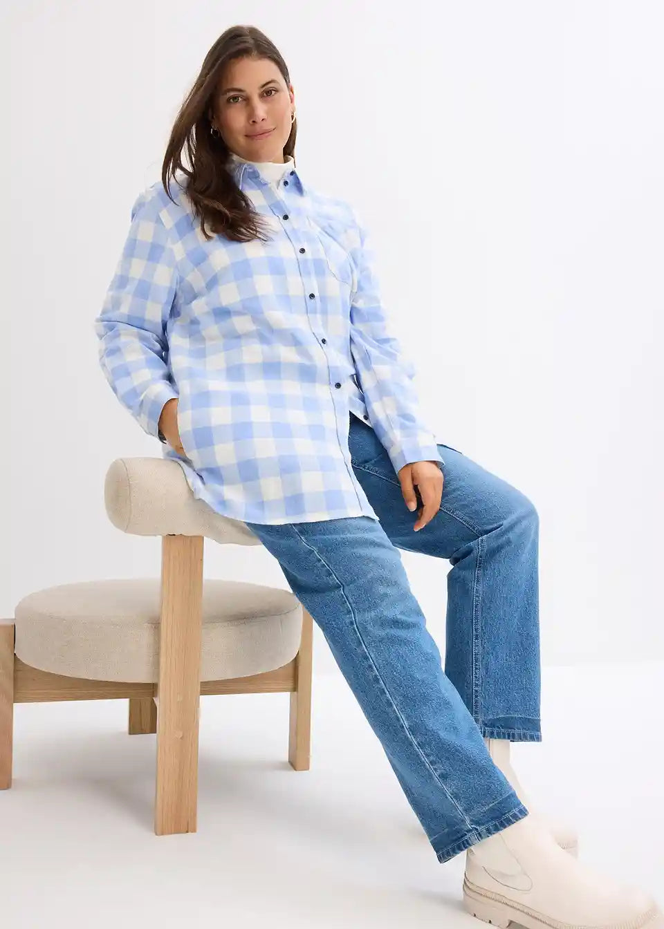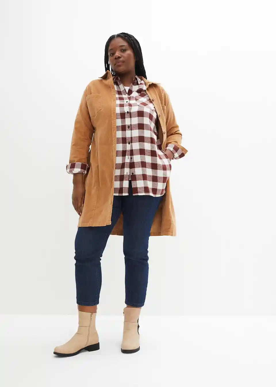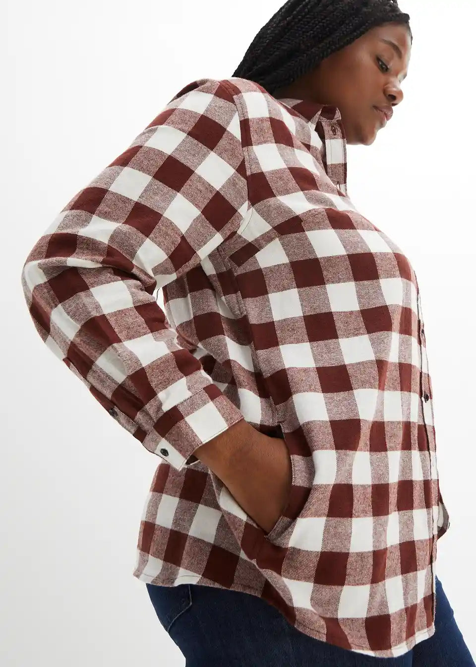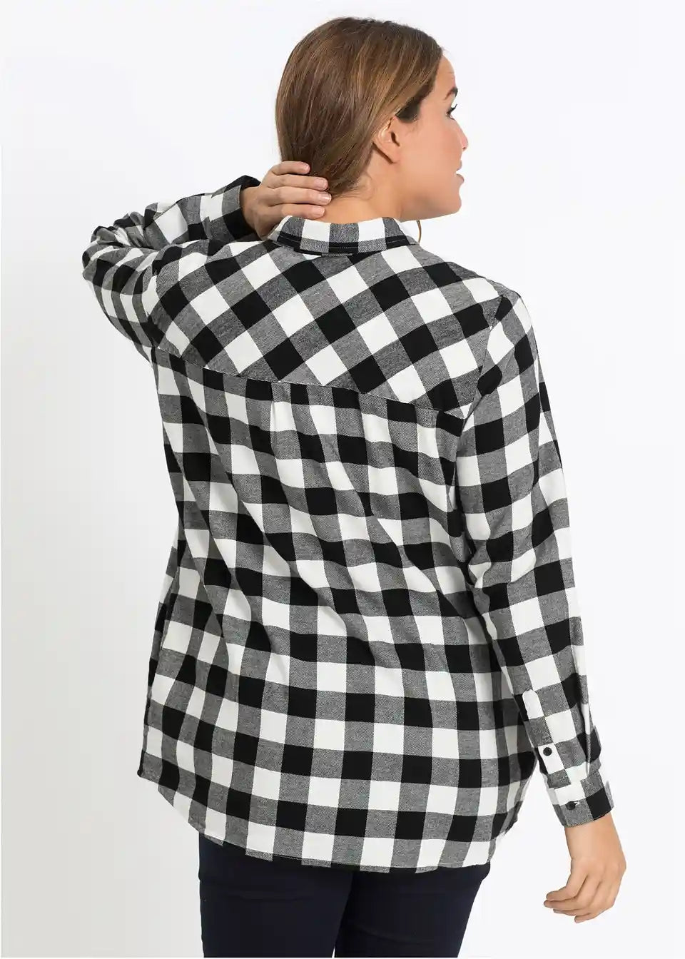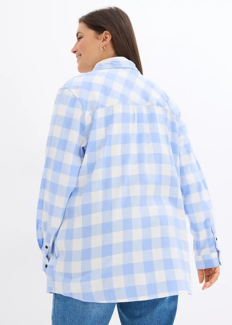 Ova bluza dugih rukava brenda John Baner pruža ženama moderan izgled. Odlikuje se mekom flanelskom tkaninom i privlačnim kariranim uzorkom. Model se ističe dugim krojem i blago zaobljenim rubom. Flanel duga bluza ima ležeran kroj i može se zakopčati s gumbima. Jedan džep na prsima zaokružuje opušteni dizajn.