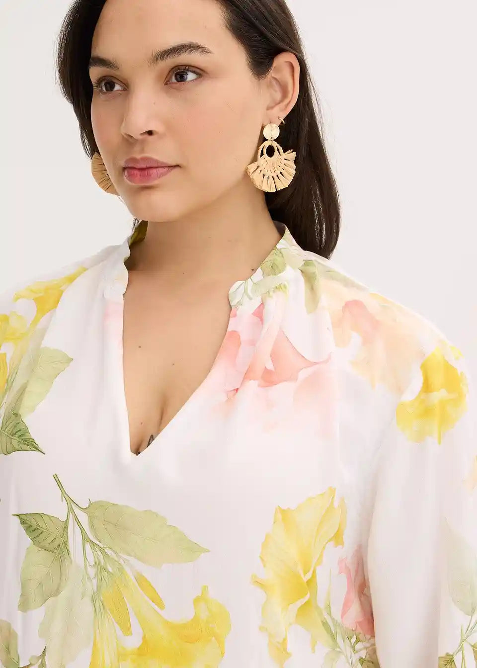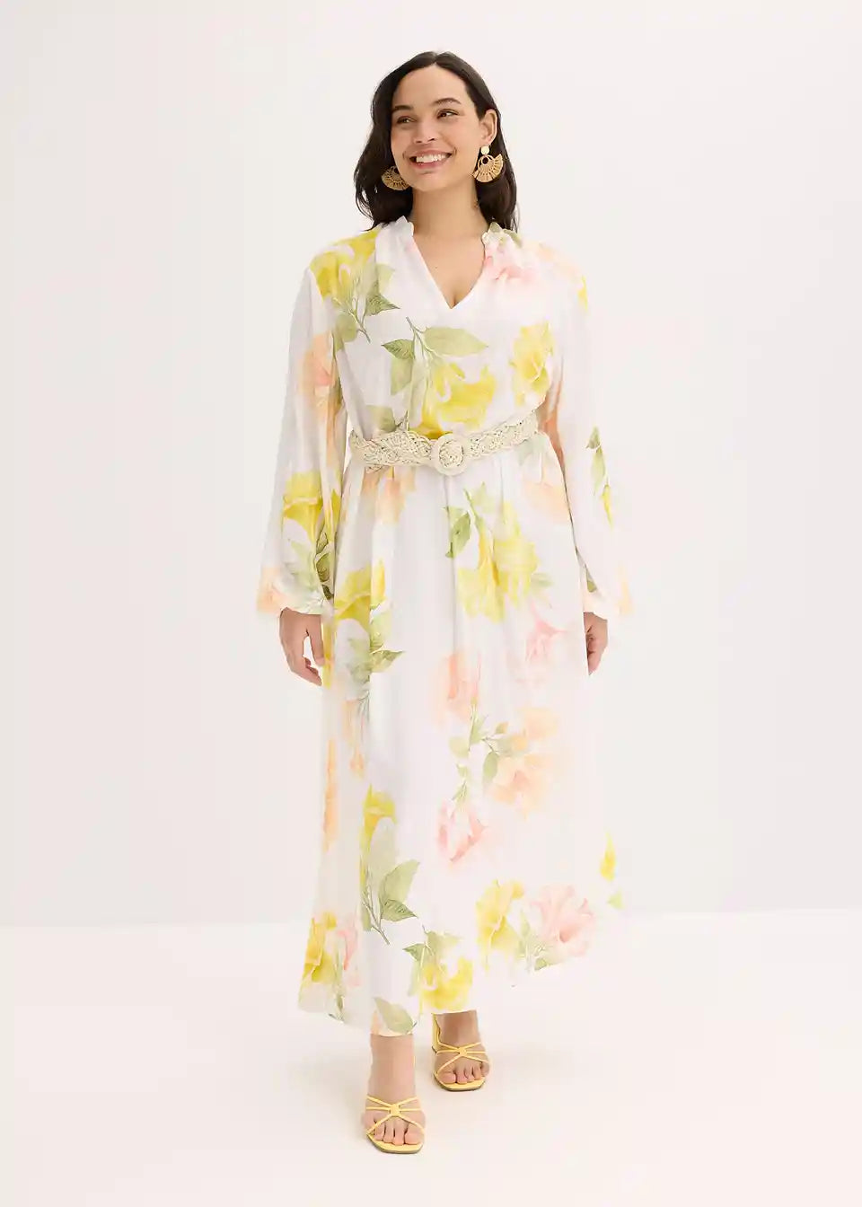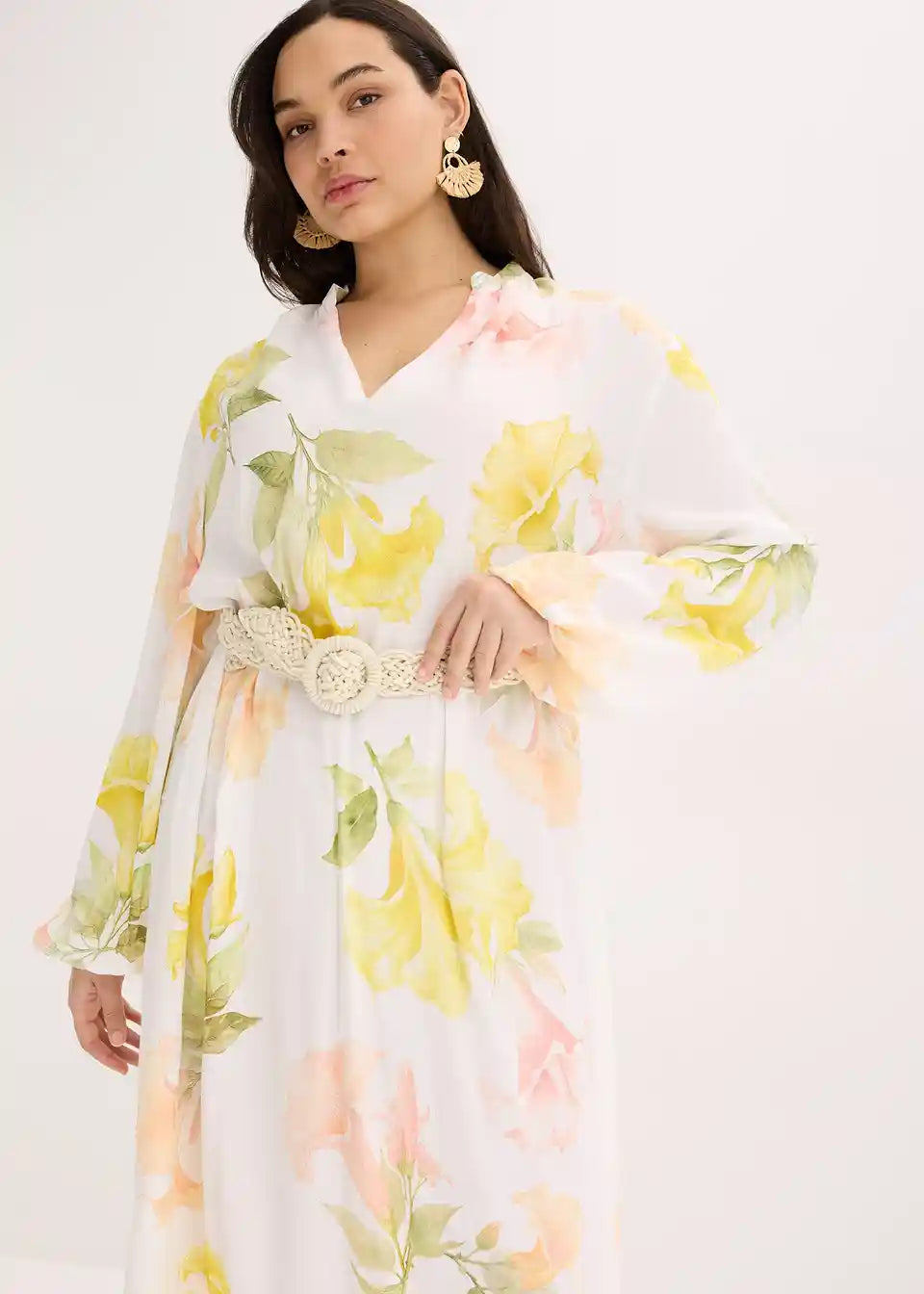 Široka maksi haljina s cvjetnim uzorkom i voluminoznim rukavima