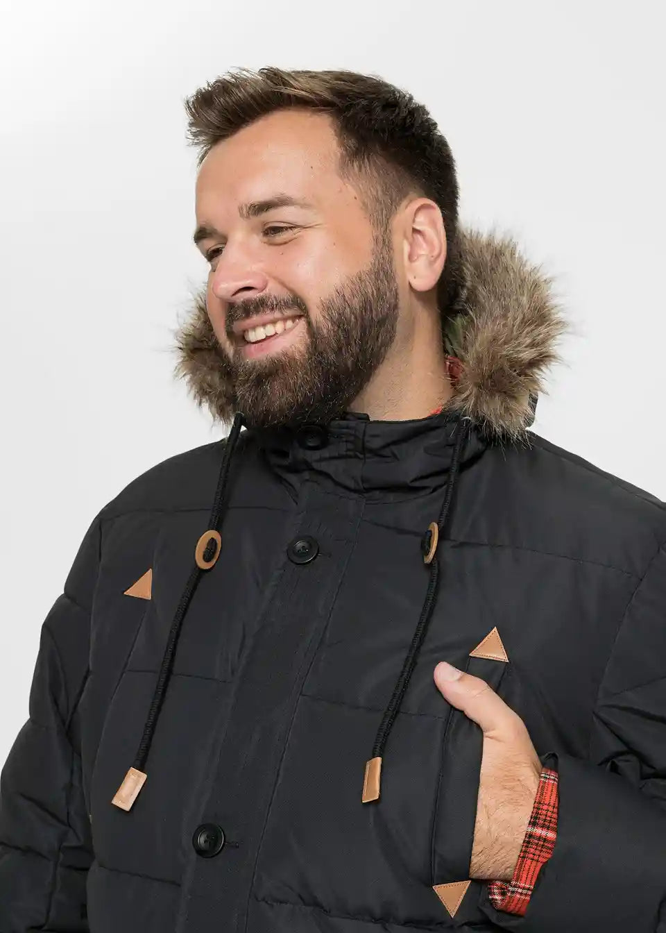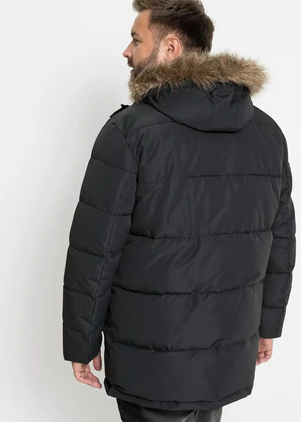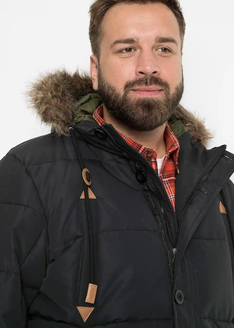 Ova muška zimska parka regularnog kroja savršen je outfit za hladnu sezonu. Dugi kaput impresionira kapuljačom koja je na rubu obrubljena mekanim umjetnim krznom. Dva velika našivena džepa, dva kosa džepa i unutarnji džep nude prostor za mnoge dodatke. Zimska parka regularnog kroja zatvara se s prekrivenim patentnim zatvaračem.