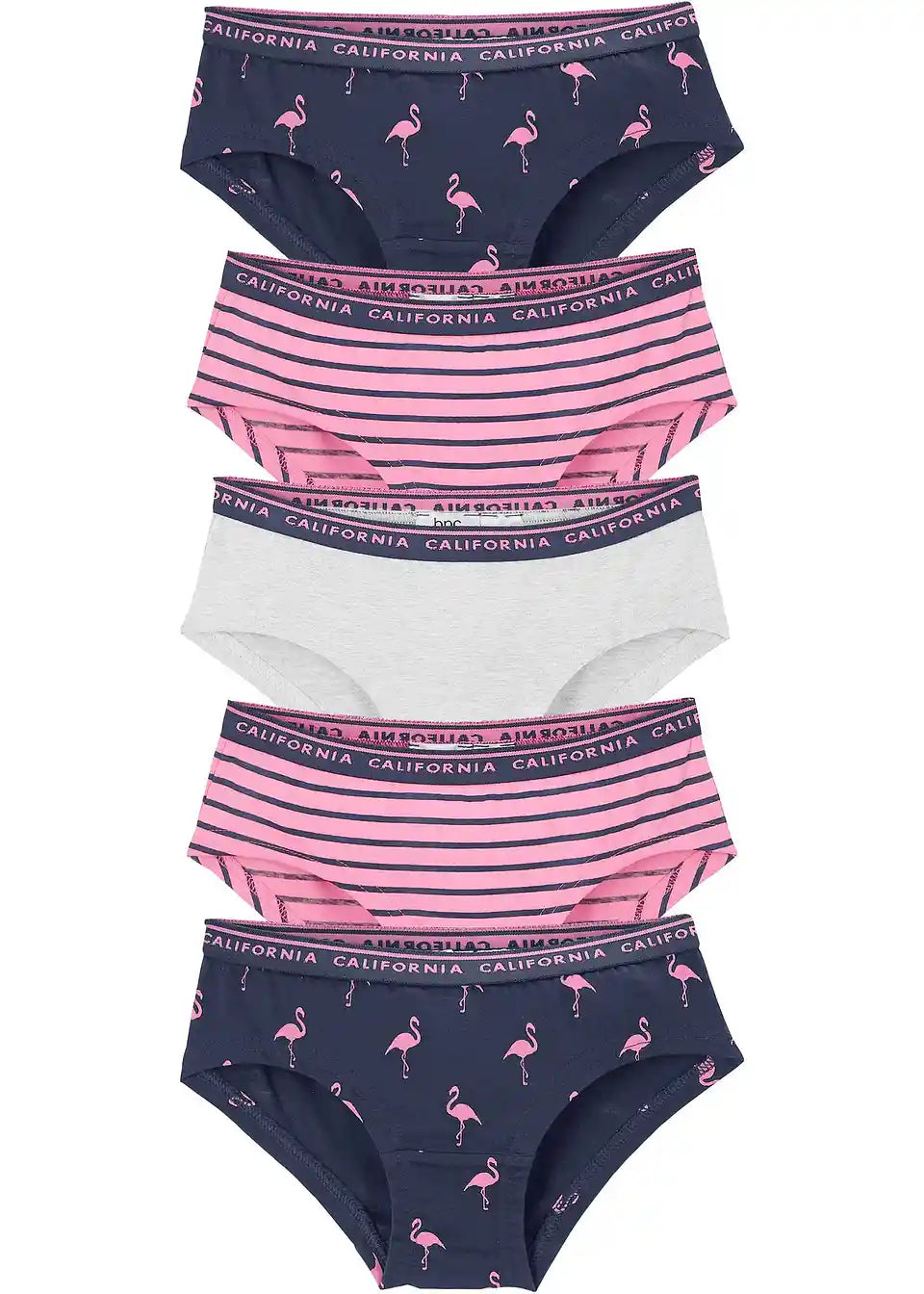 Ove dječje gaćice iz aktualne kolekcije bpc ističu se visokim udobnošću nošenja i modernim izgledom. Ugodan pamučni materijal s dodatkom elastana nježno prijanja uz tijelo. Gaćice dolaze u povoljnom pakiranju od 5 komada u tri različite kombinacije boja i uzoraka.