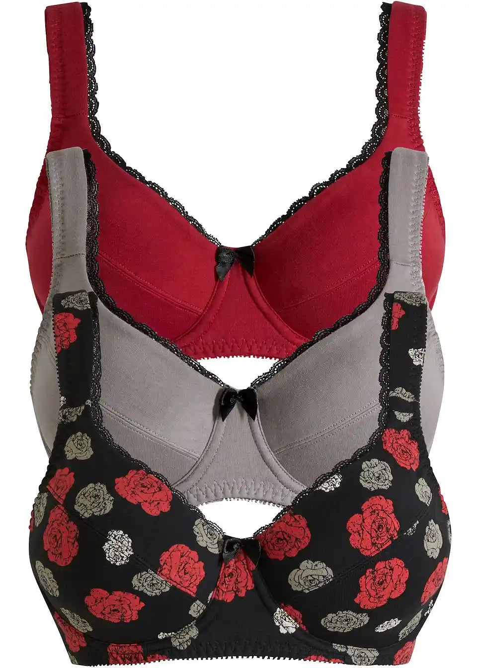 Grudnjak s žicom od mekanog organskog pamuka s širokim, podstavljenim naramenicama u paketu od 3 komada
