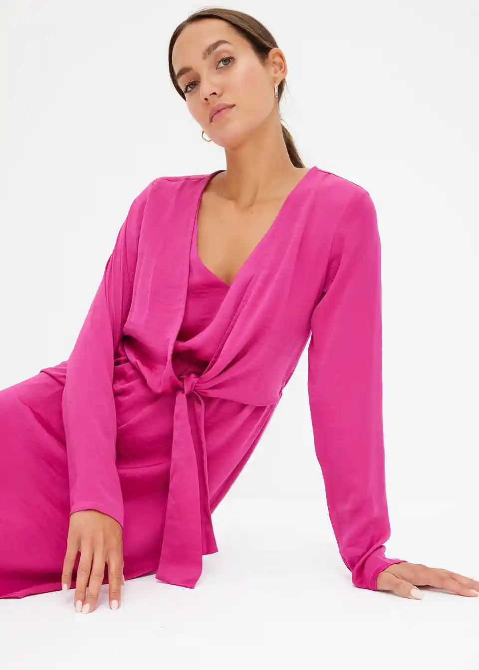 ženska satenska haljina s bolero izgledom