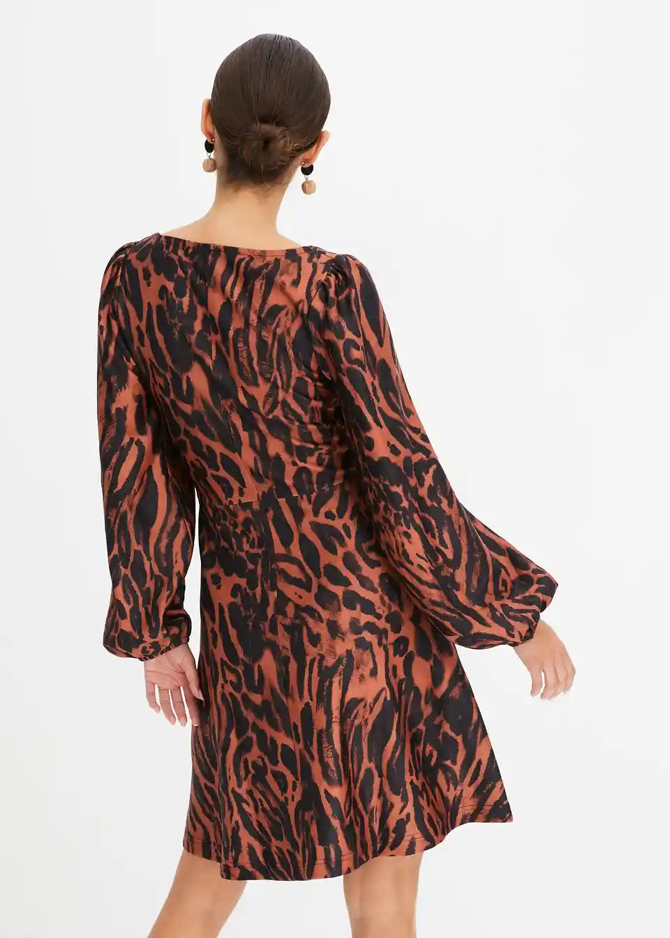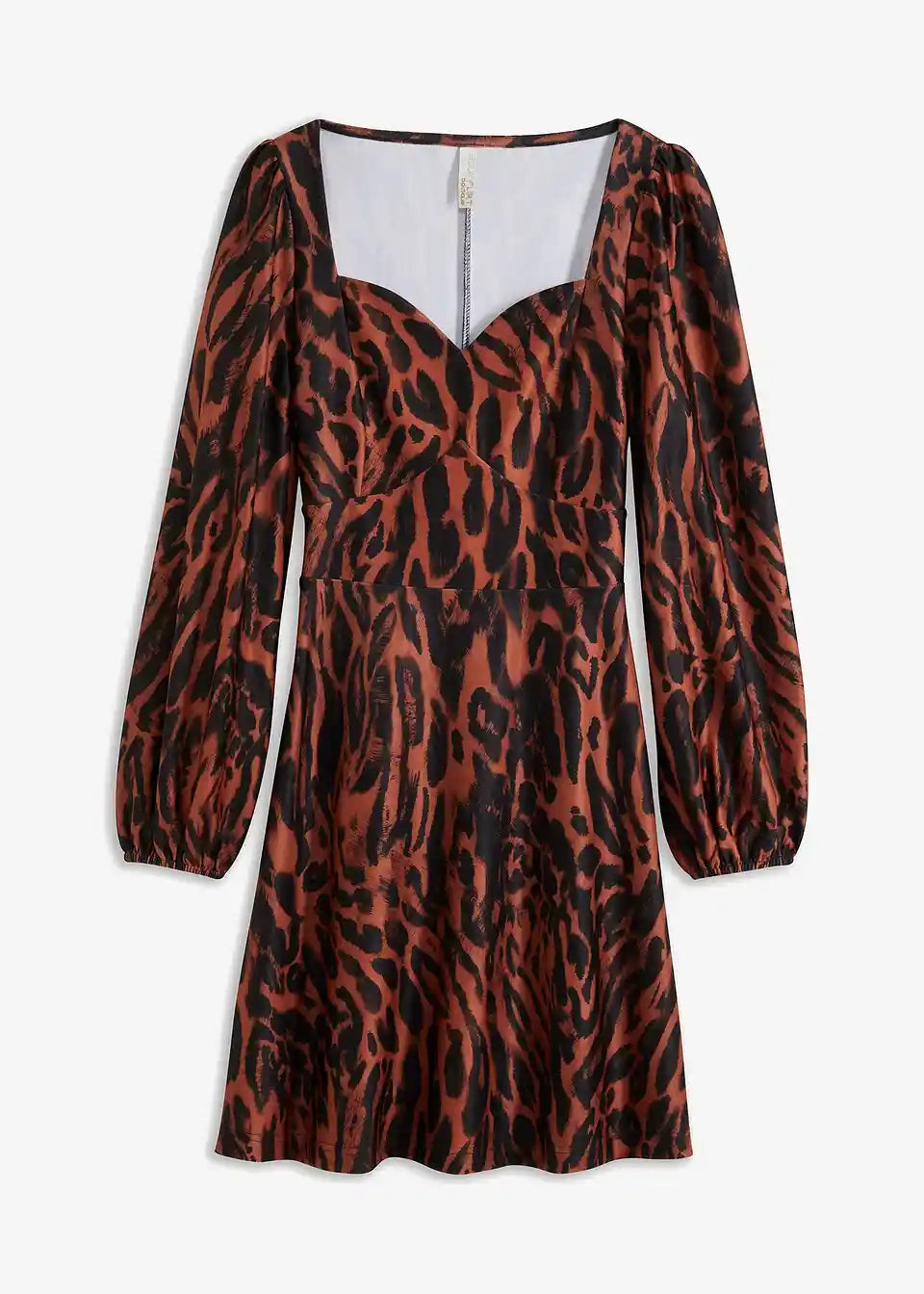 Stilizirana haljina s izrezom u obliku srca i upečatljivim uzorkom