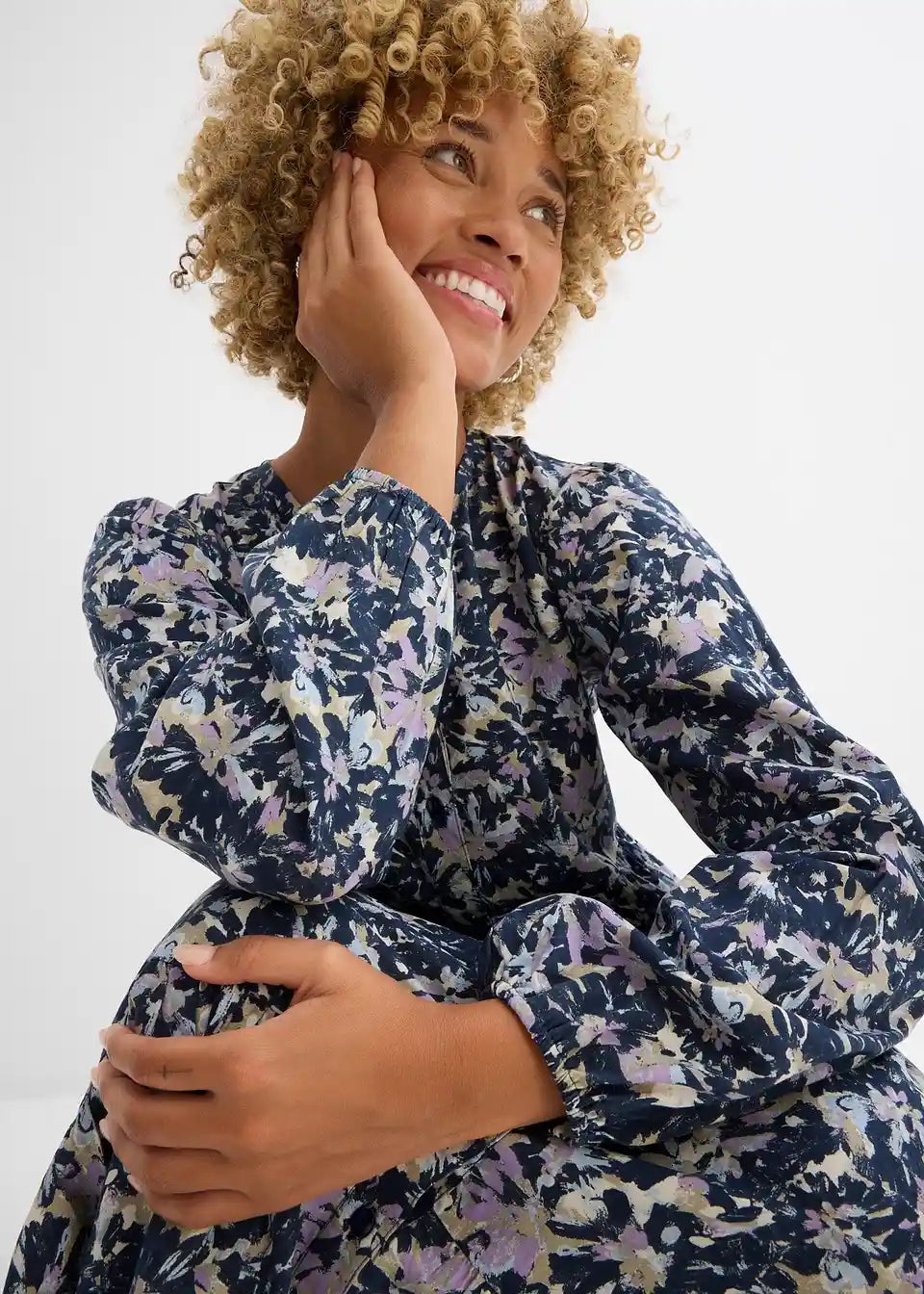 Haljina-bluza u laganom A-kroju. S elastičnim završetkom na manžeti rukava i cvjetnim printom.