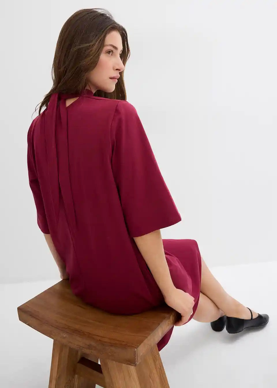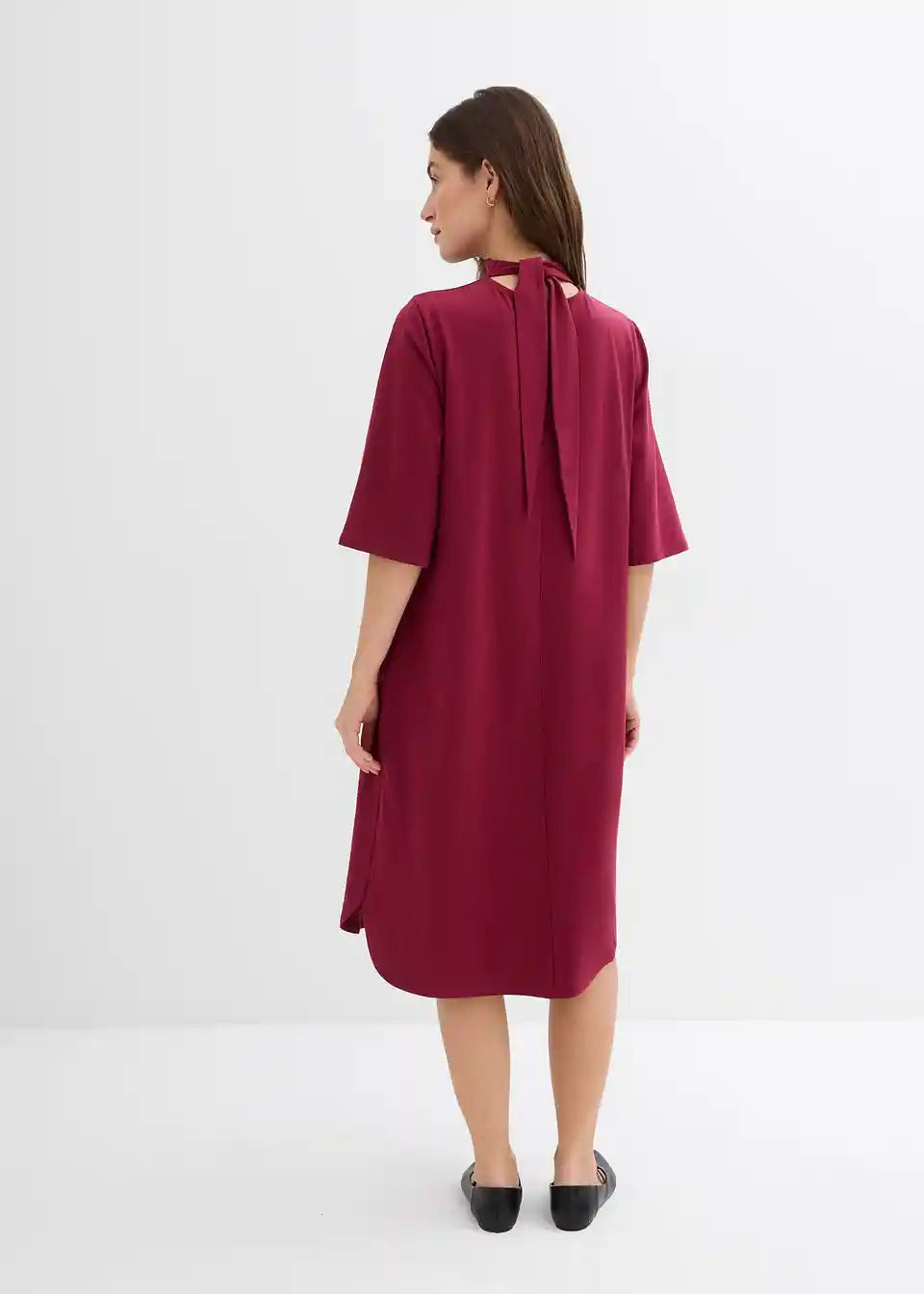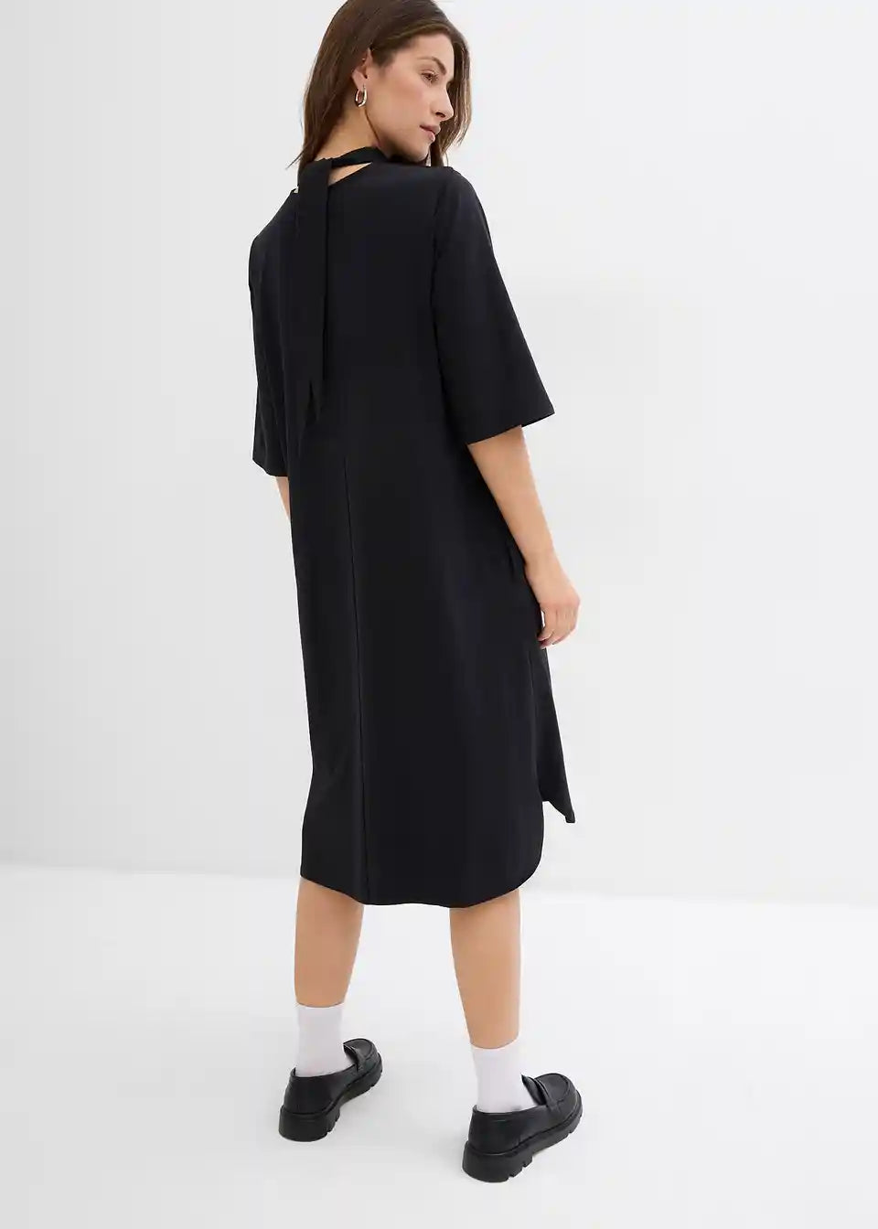 Midi haljina s visokim ovratnikom i detaljem za vezanje na stražnjoj strani vrata