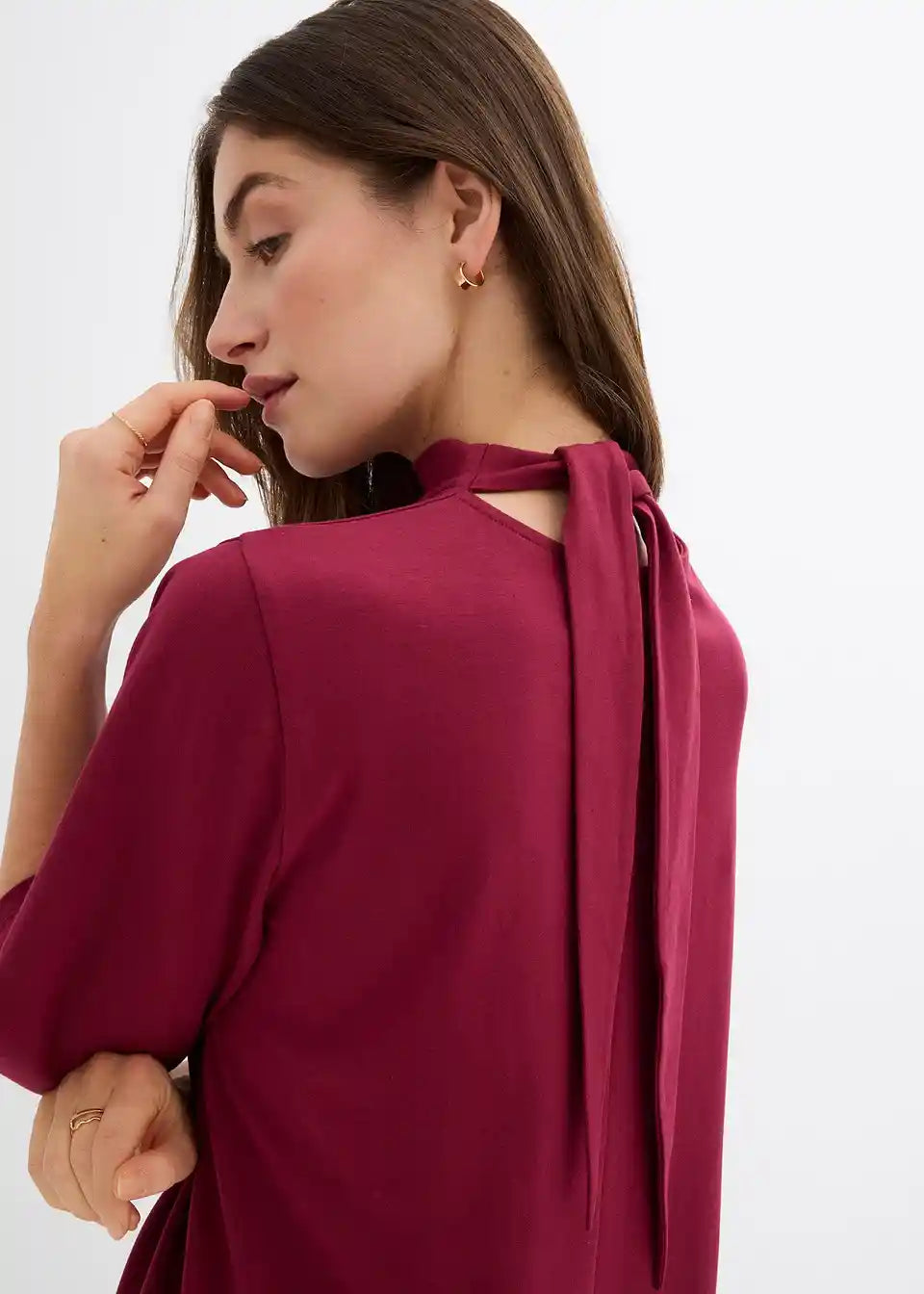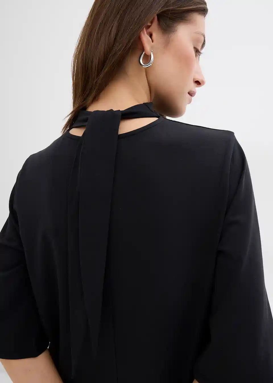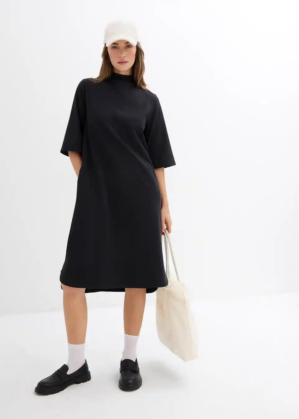 Midi haljina s visokim ovratnikom i detaljem za vezanje na stražnjoj strani vrata