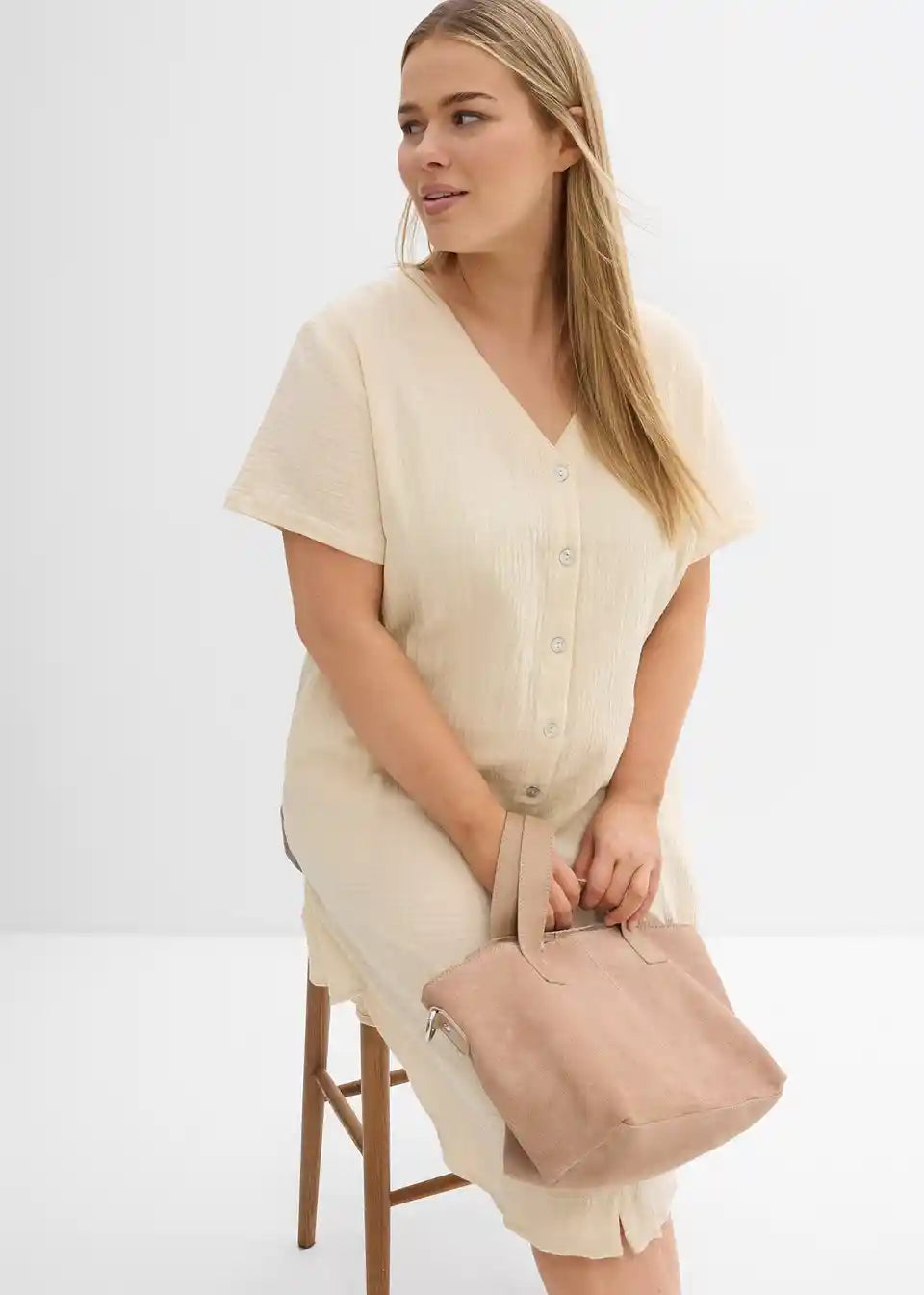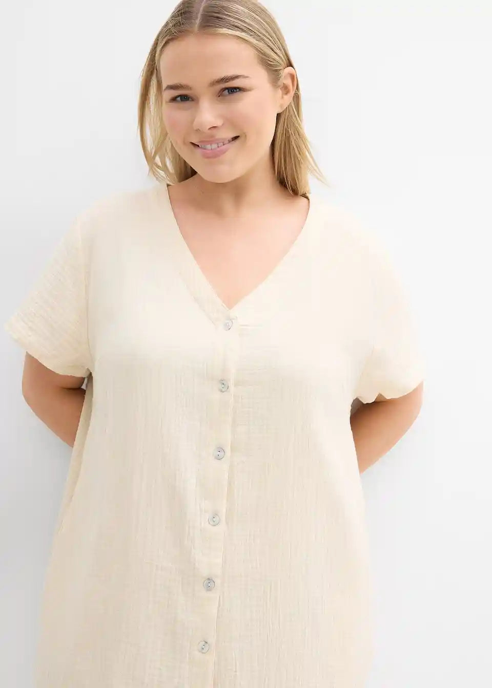 Značajka kroja:u dužini preko bokova, pruži komfor zbog raspora sa strane, s V izrezom za vitak izgled, sakrije puniji trbuh, stražnjicu, šire bokove i bedra, s kopčanjem sprijeda