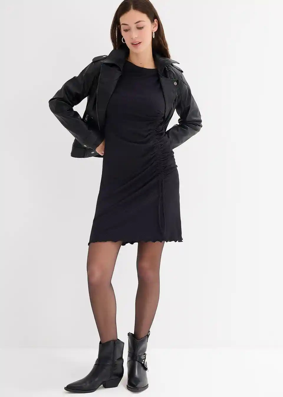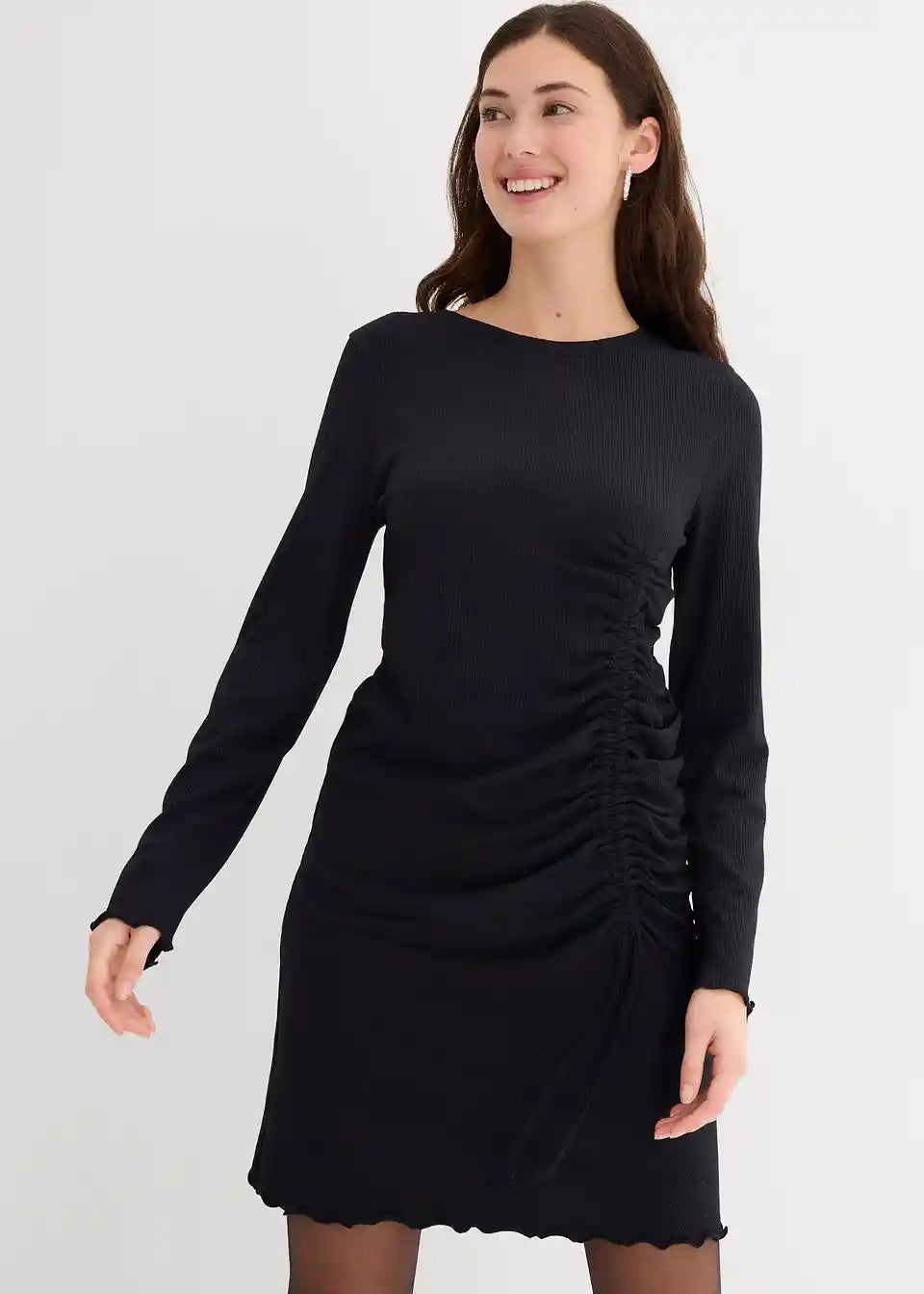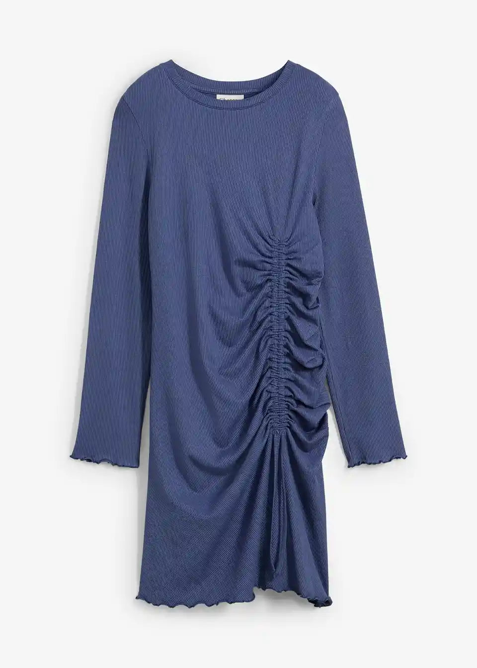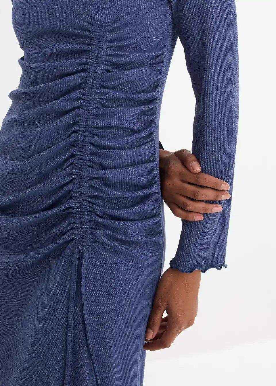 Moderna jersey haljina-košulja s detaljem nabiranja i dugim rukavima