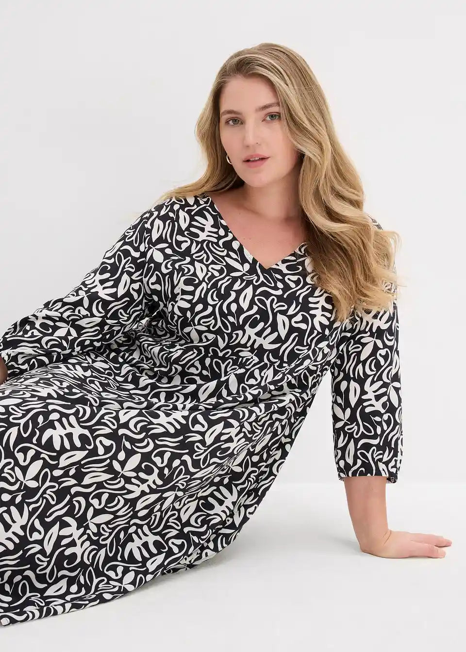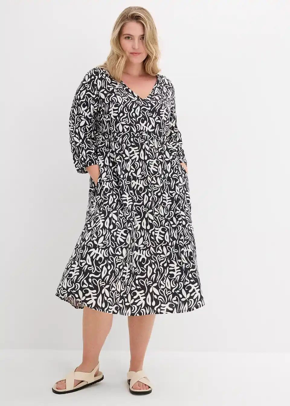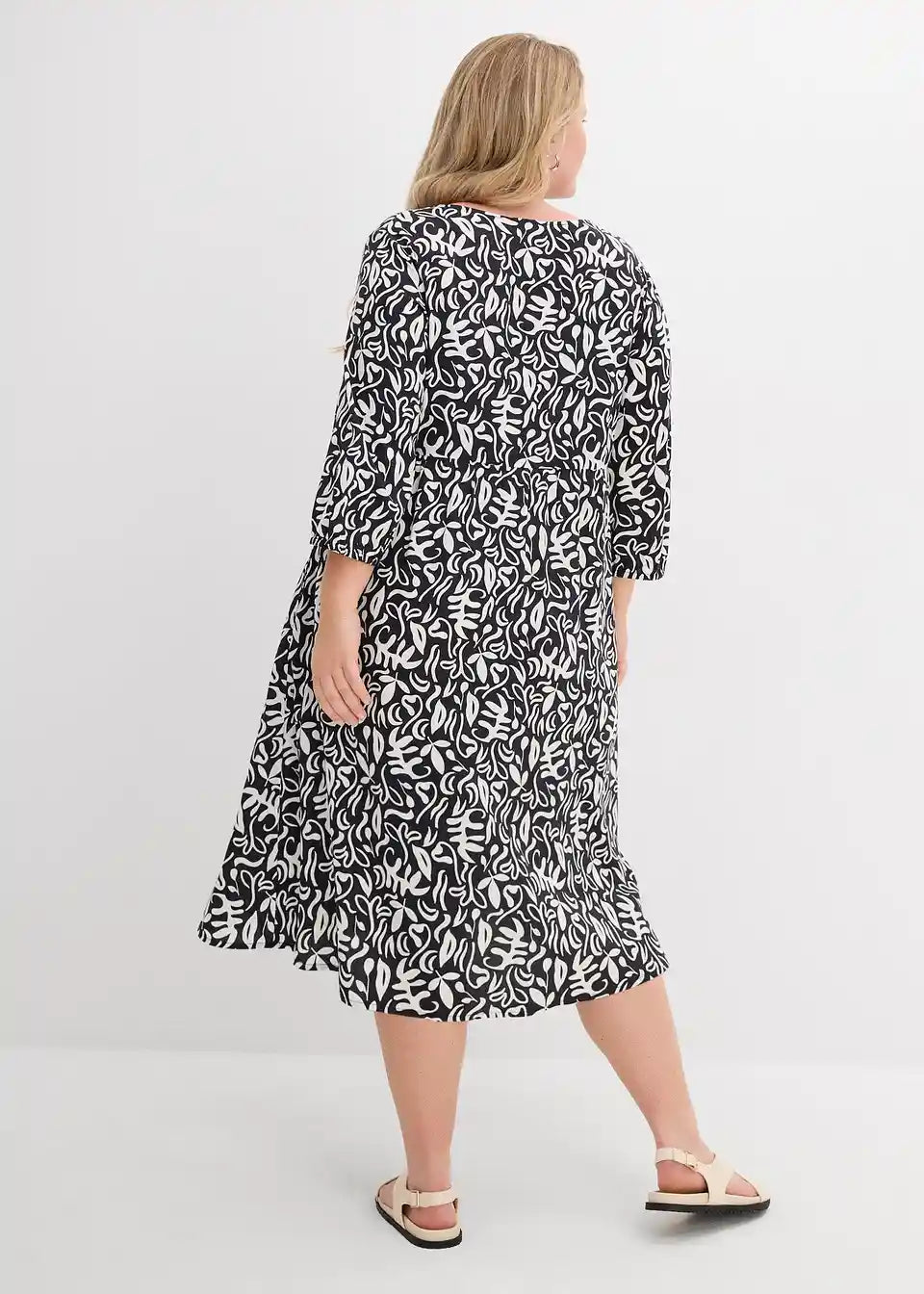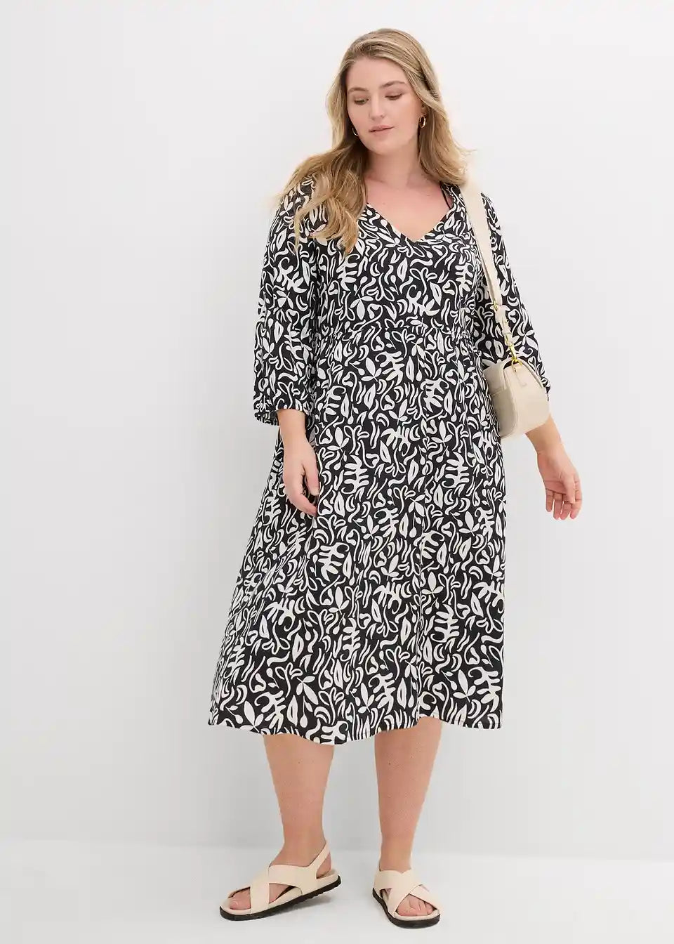 Tkana haljina od viskoze midi duljine s džepovima, ležernog kroja