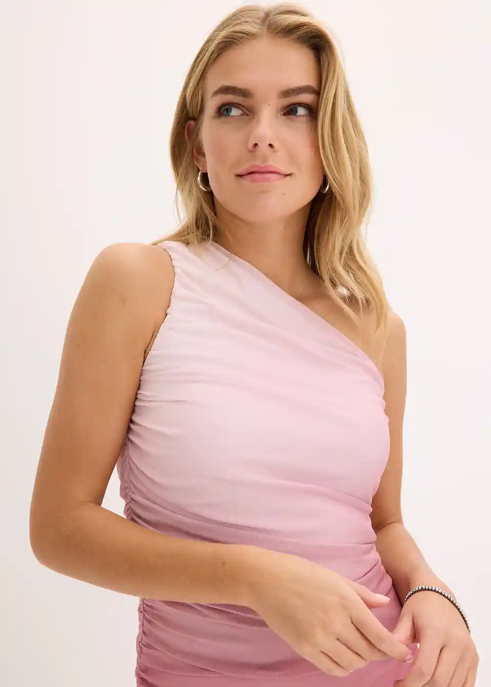 Haljina s otvorenim ramenom i mrežastim umetkom