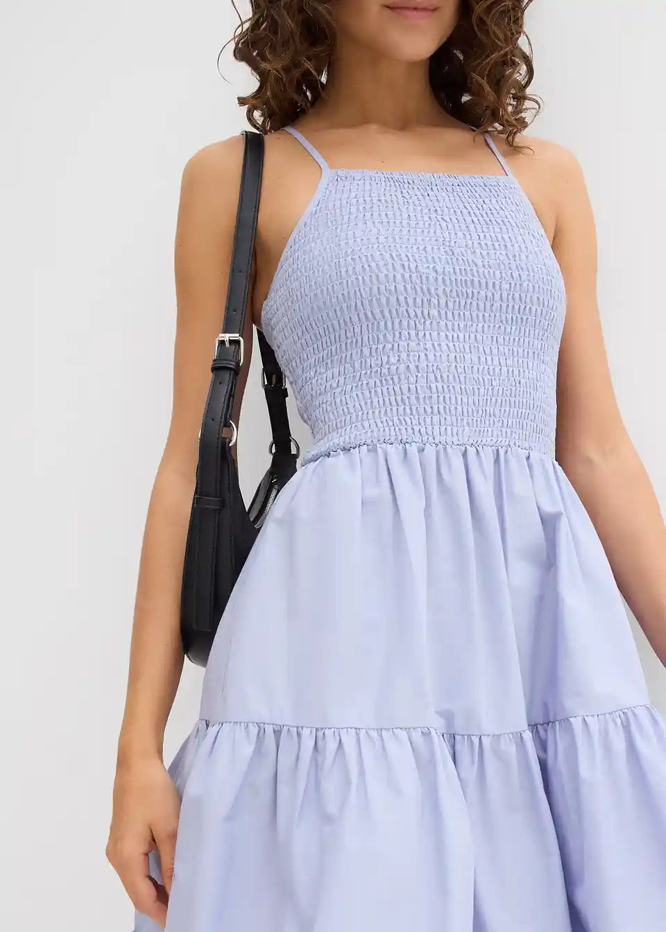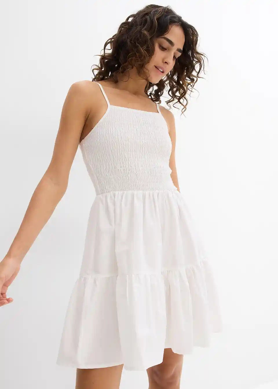 Haljina na naramenice od čistog organskog pamuka s volanima i smokom