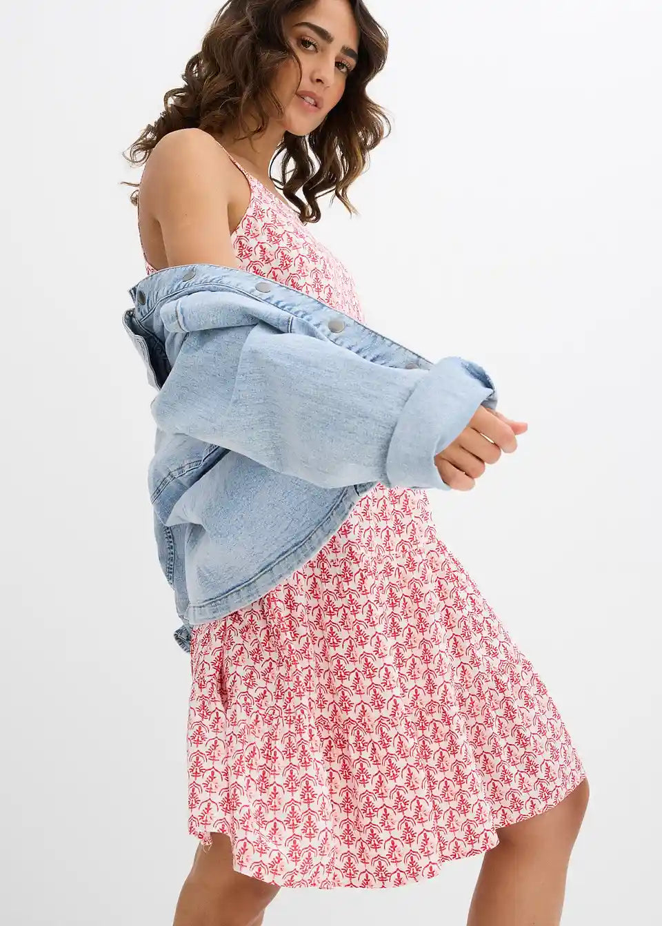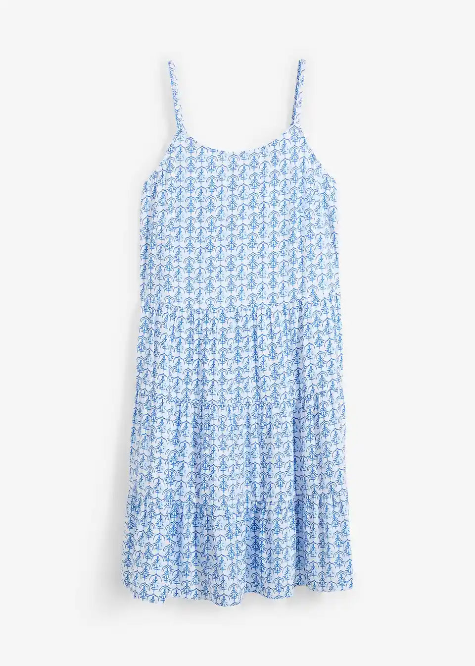 Tiskana, kratka haljina na tregere od lepršave viskoze s volanima