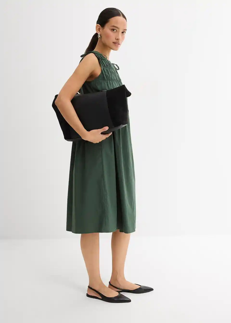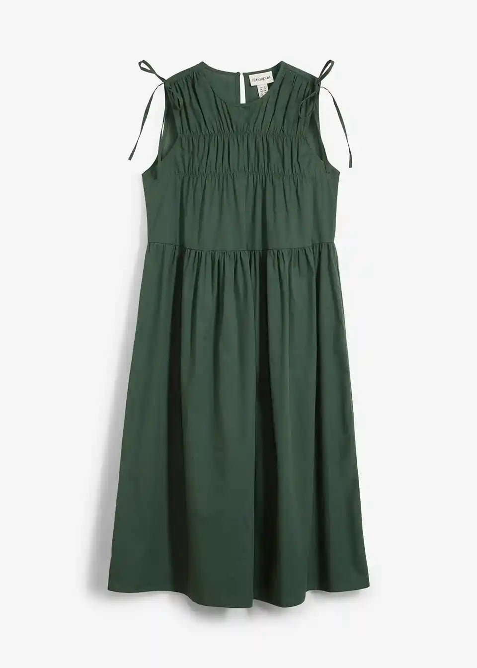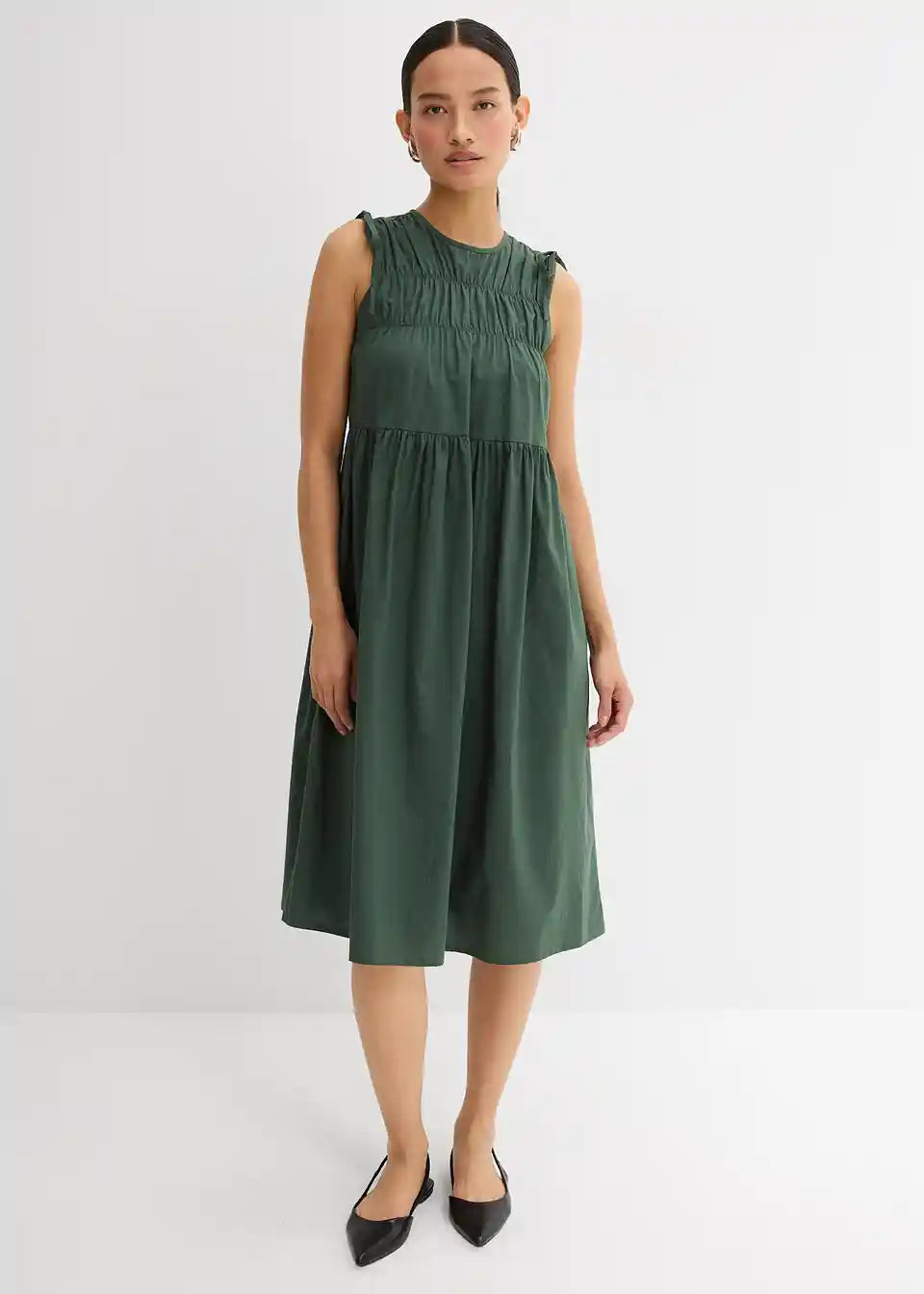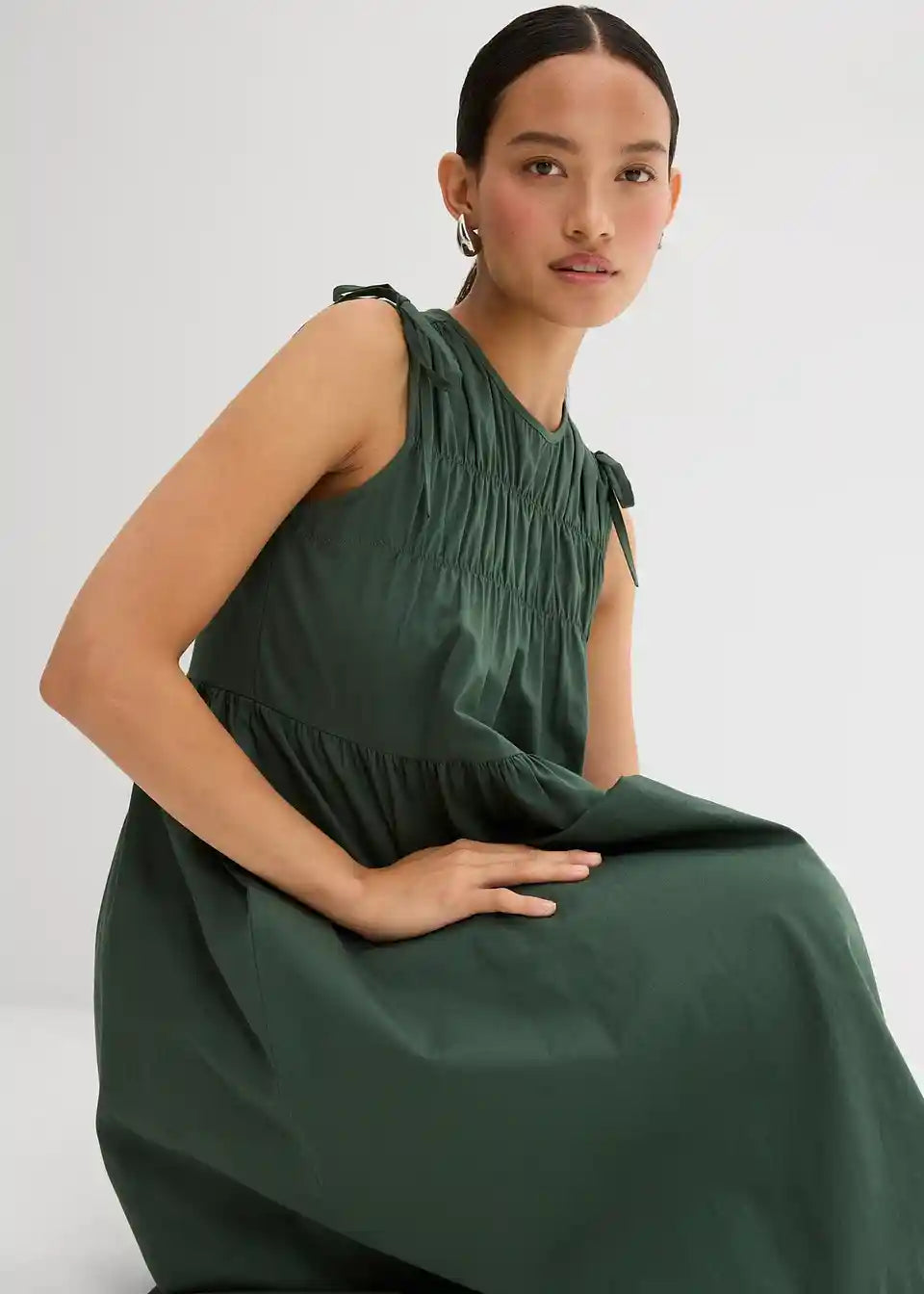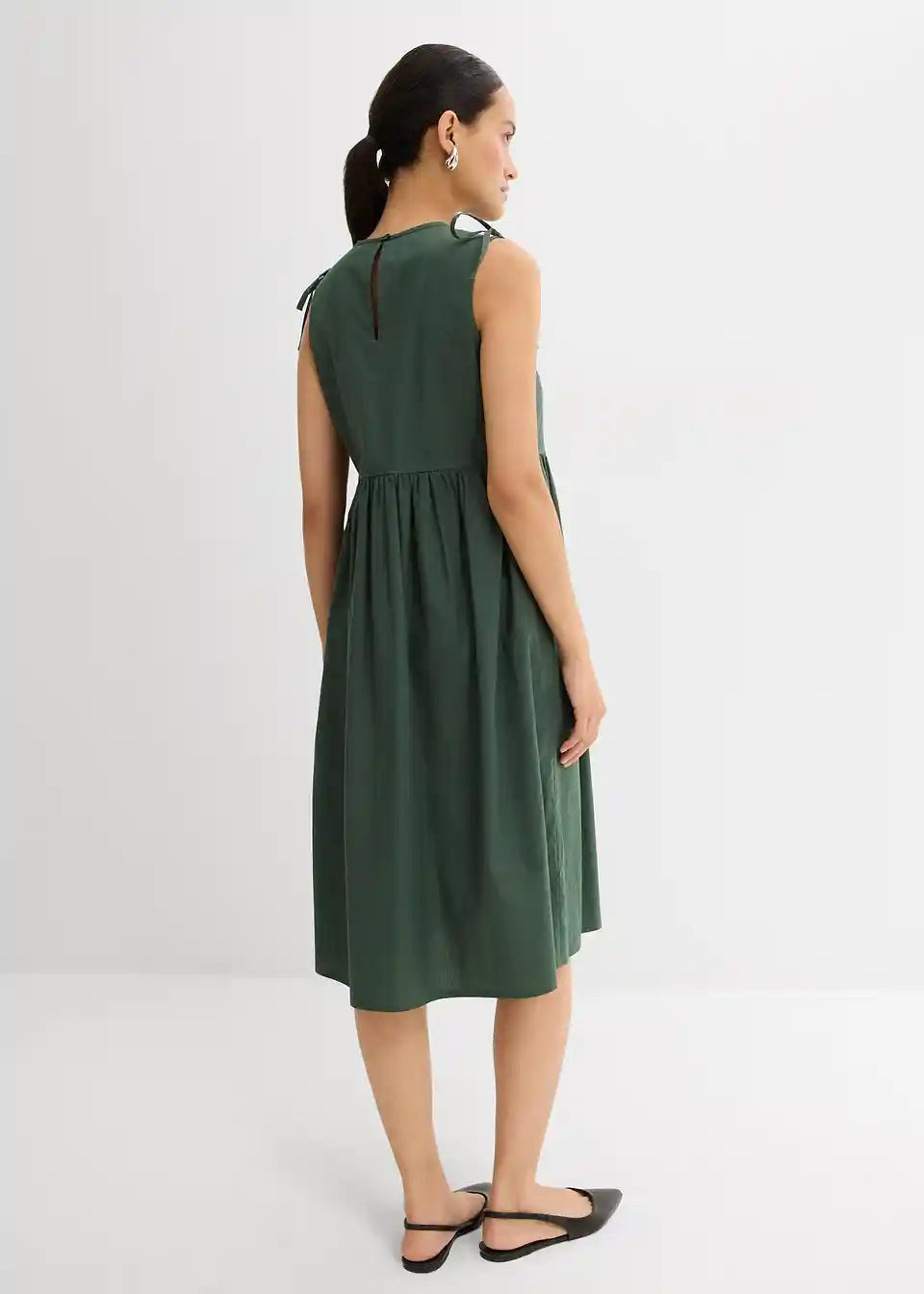 Haljina bez rukava s lepršavom suknjom, drapiranjem na gornjem dijelu te izrezom u obliku ključa na leđima
