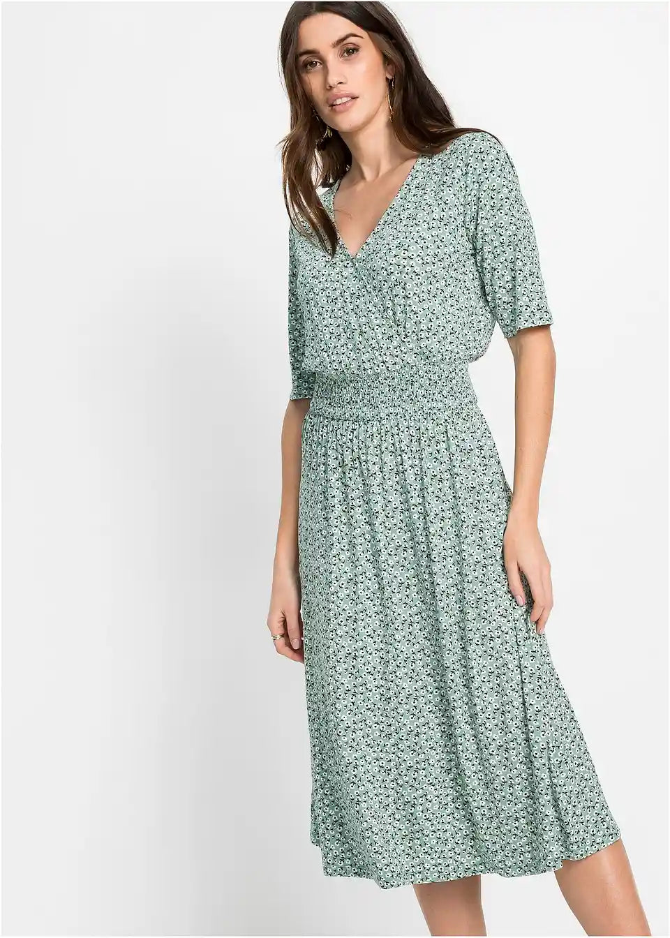 Ljetna haljina od jerseya od održive viskoze s elastičnim pojasom u struku.