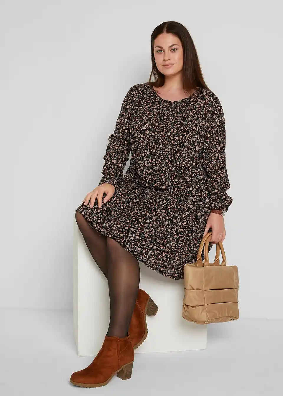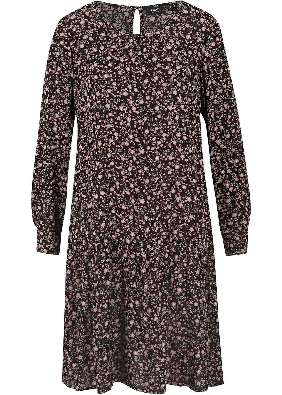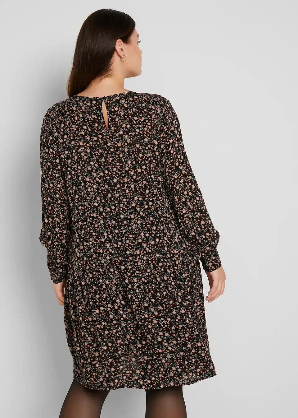 Haljina sa cvjetnim uzorkom i volanom, dugi rukavi