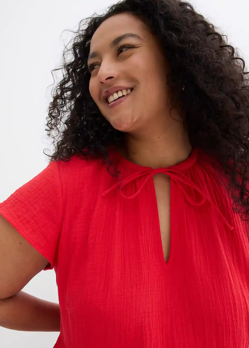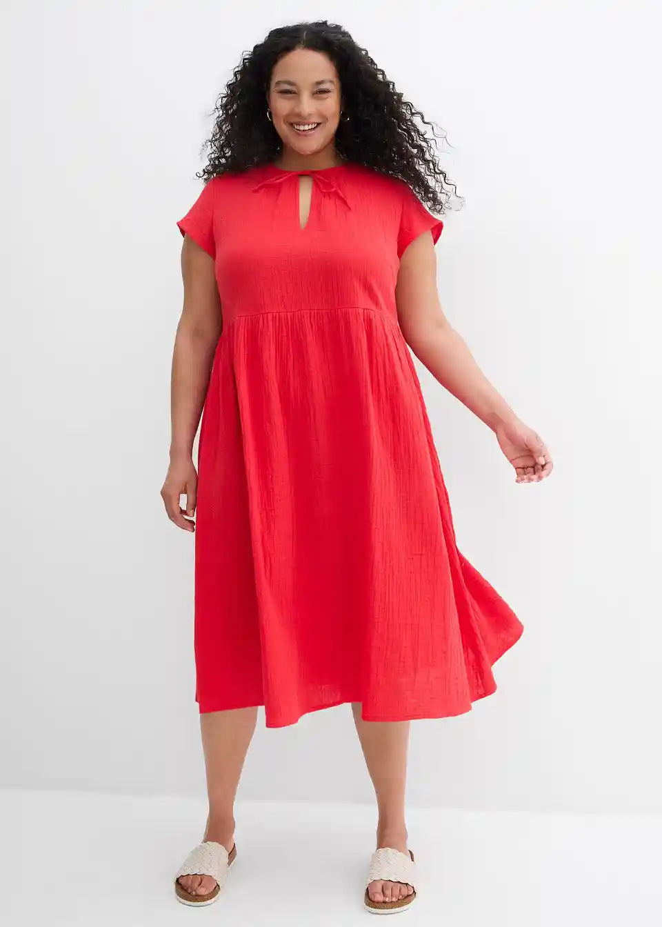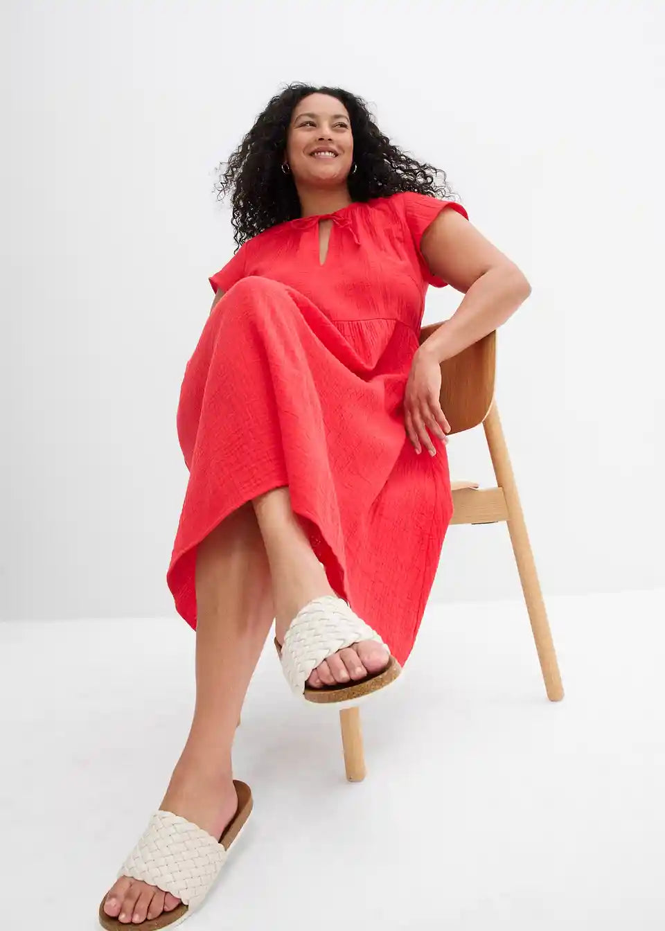 rasvijetljena muslinska haljina od čistog pamuka s V-izrezom