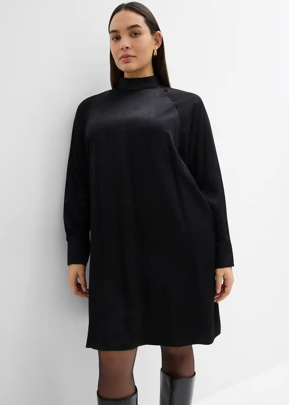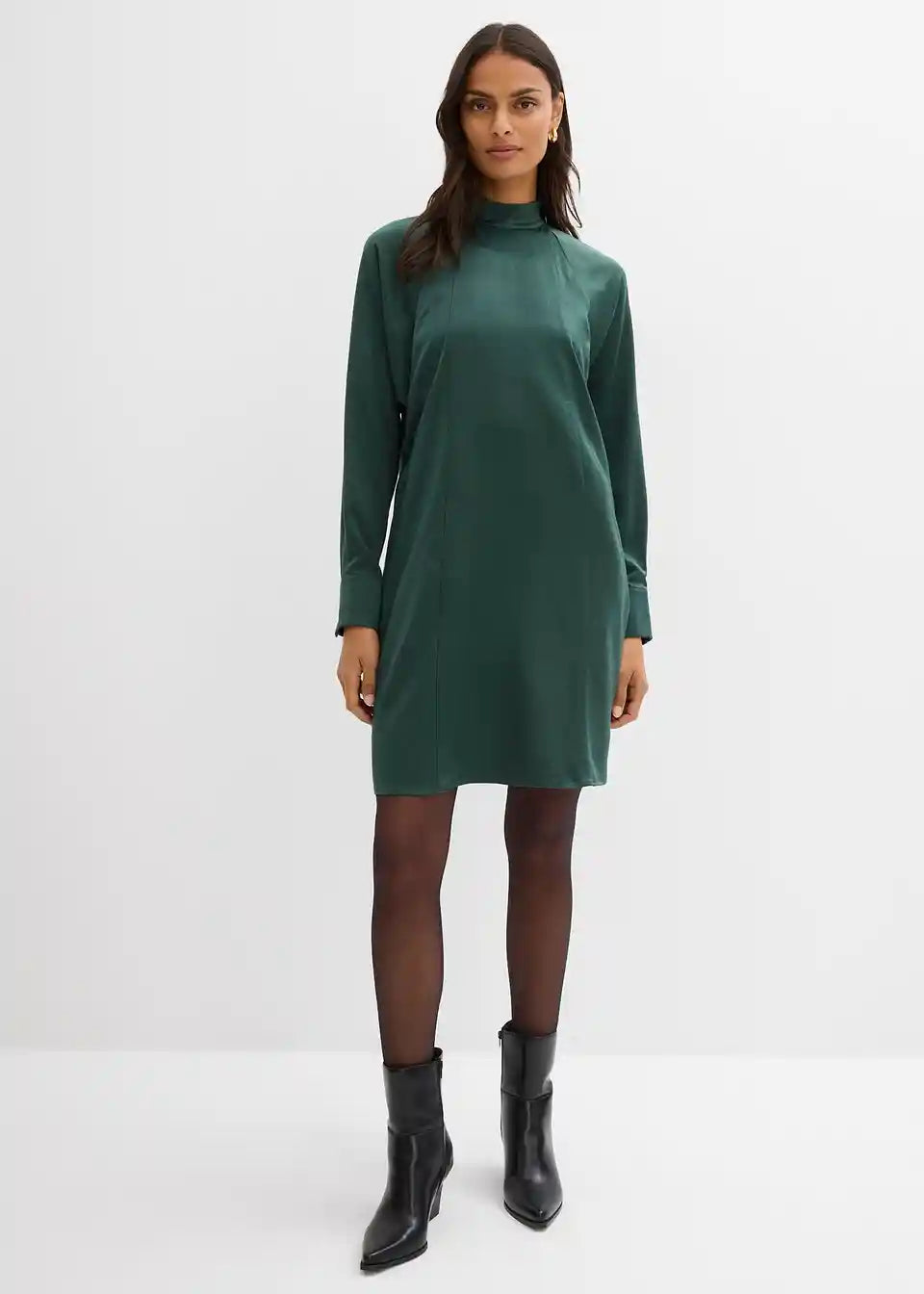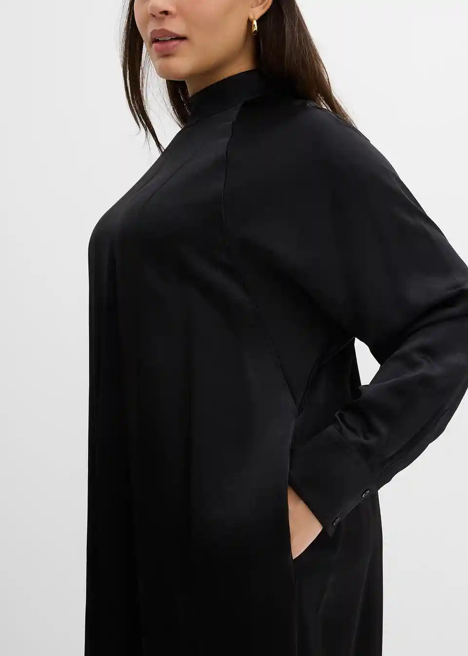 Mini haljina s visokim ovratnikom, šišmiš rukavima i bočnim ušivenim džepovima