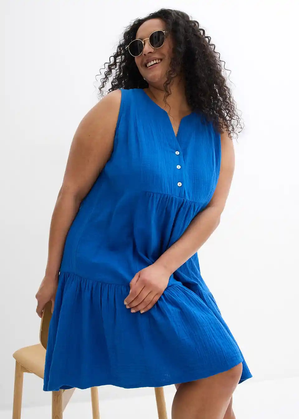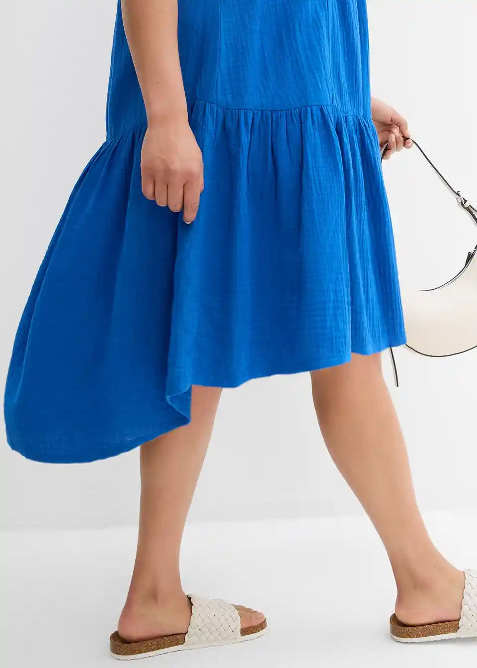 široko krojena haljina od muselina od čistog pamuka s V-izrezom