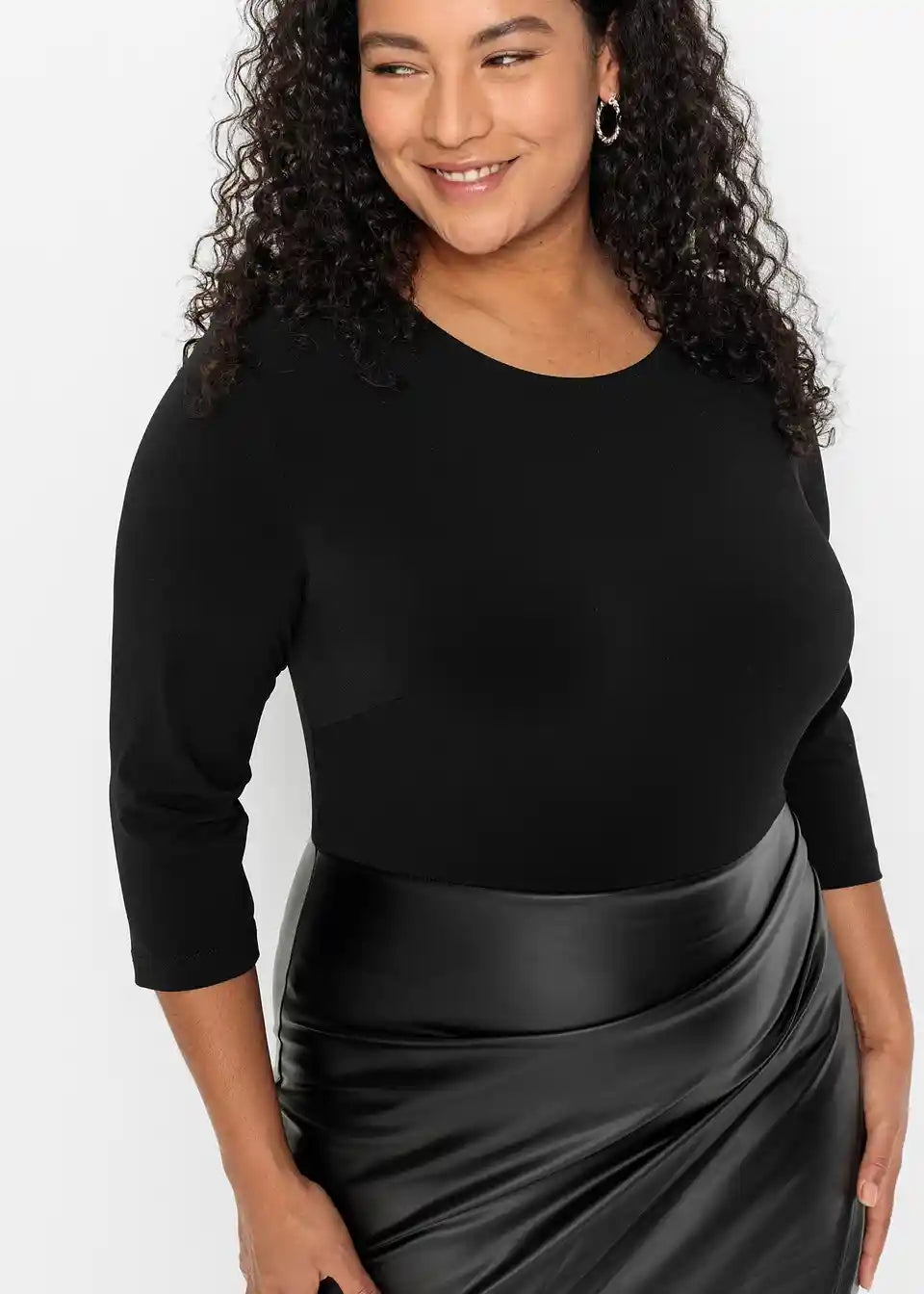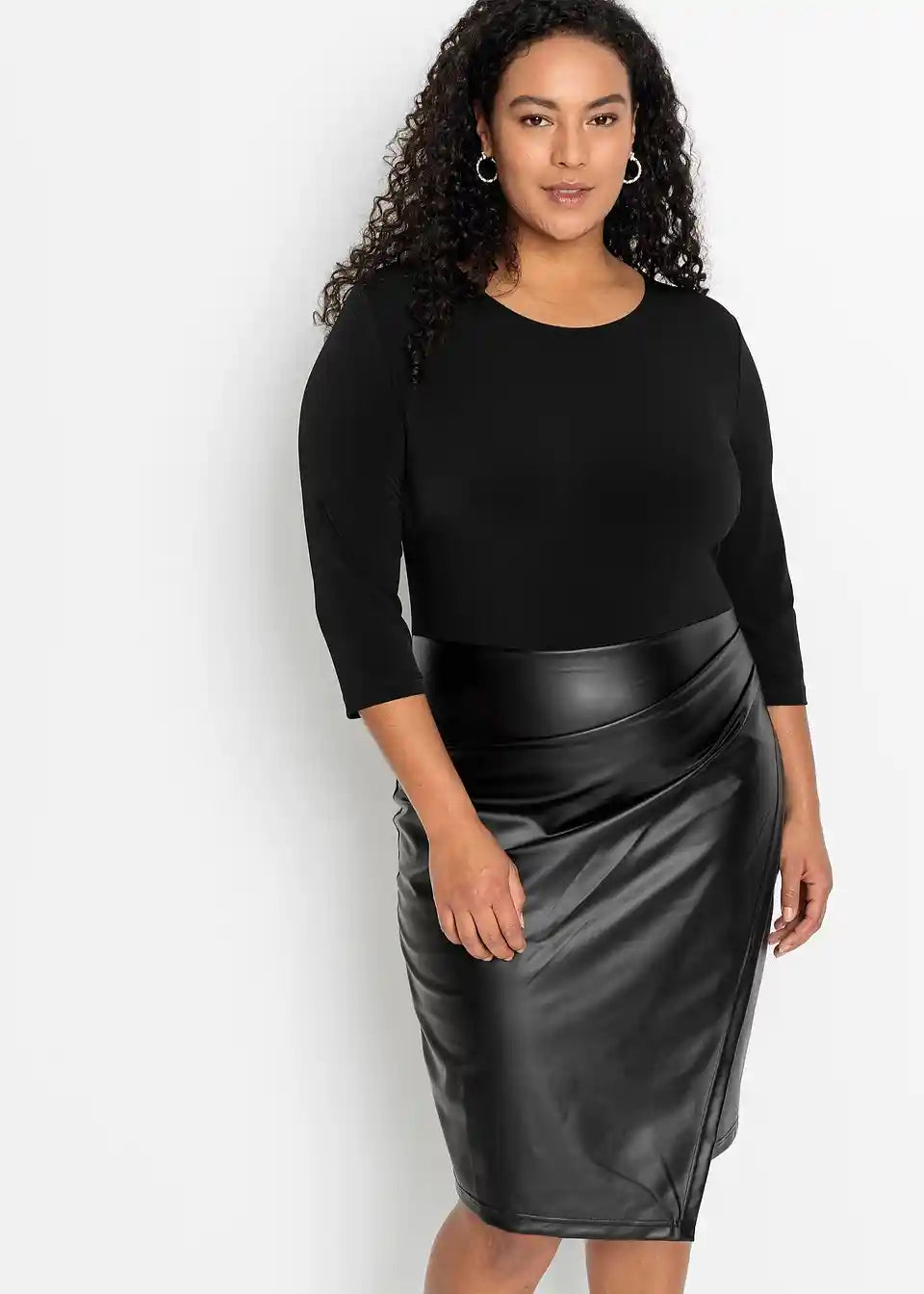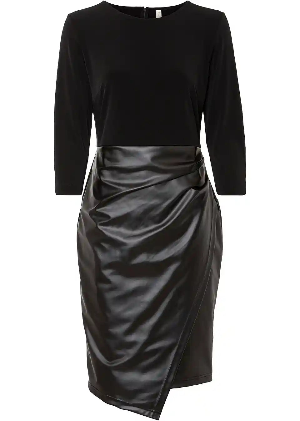 Haljina od imitacije kože s gornjim dijelom od jerseya