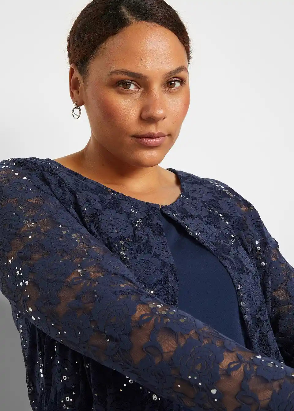 Elegantni kardigan s čipkom i ukrasnim kamenčićima