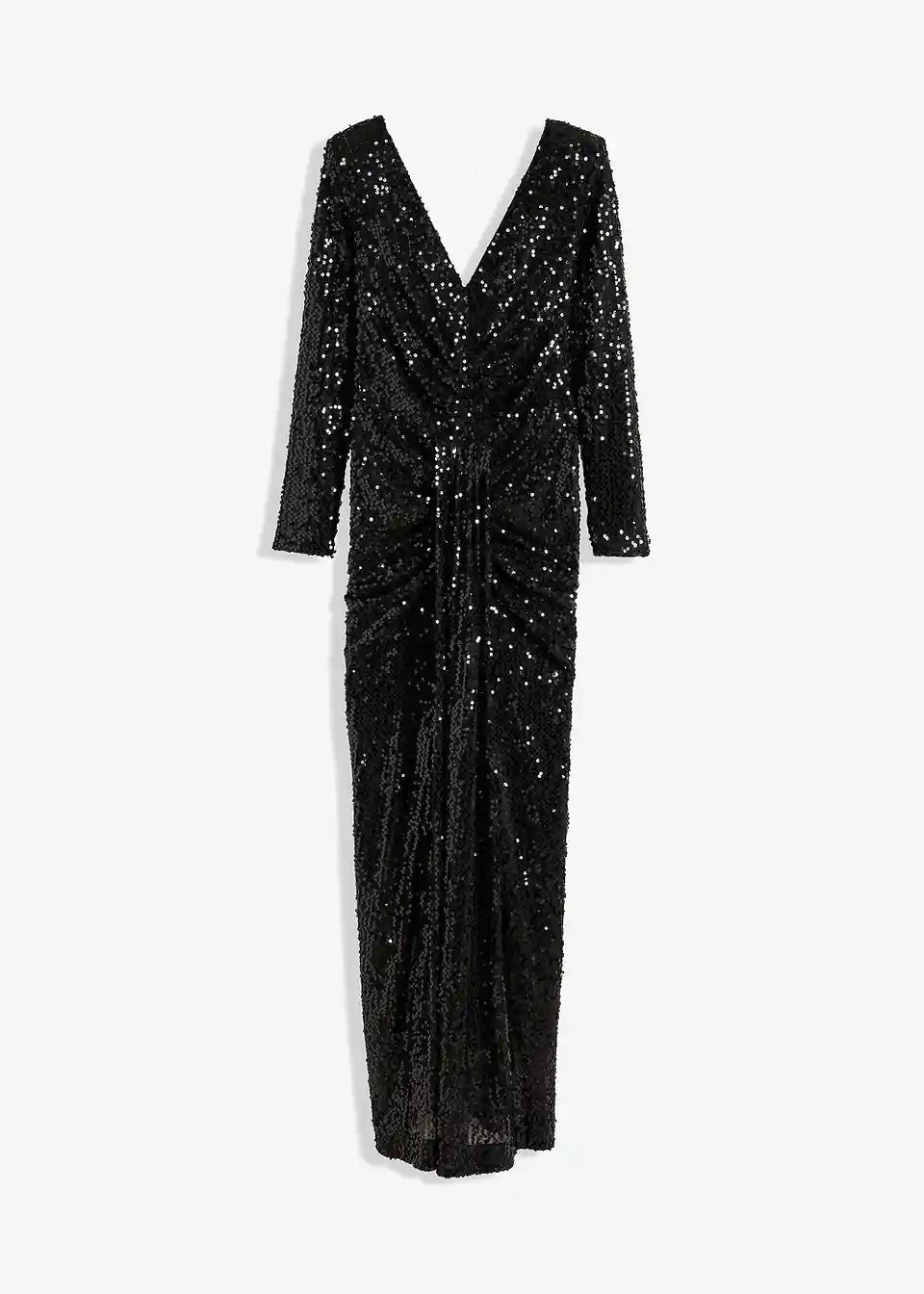 Pravi privlačitelj pogleda! Haljina ukrašena šljokicama u maksi dužini s naborima i drapiranjem u struku.