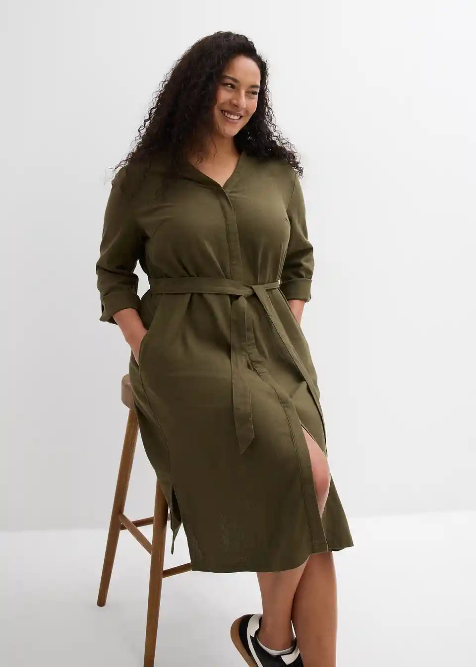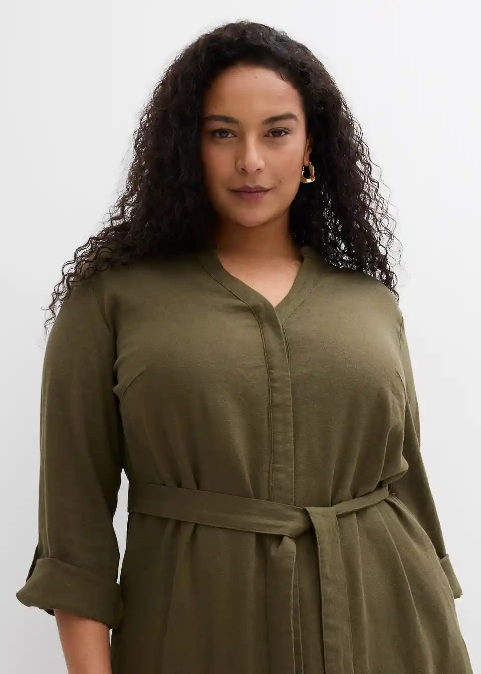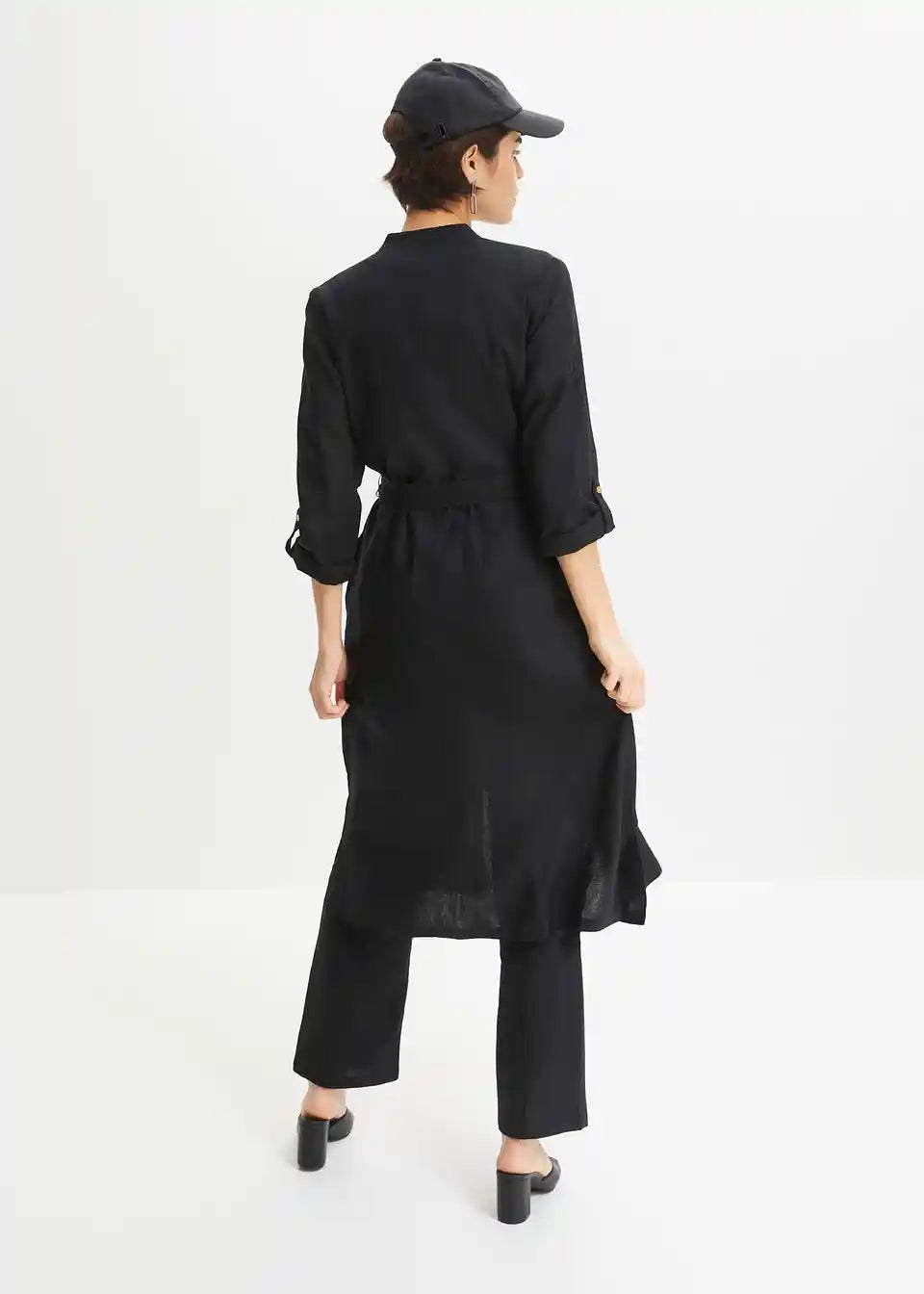 Lanena haljina s džepovima i ¾ rukavima na zavrtanje