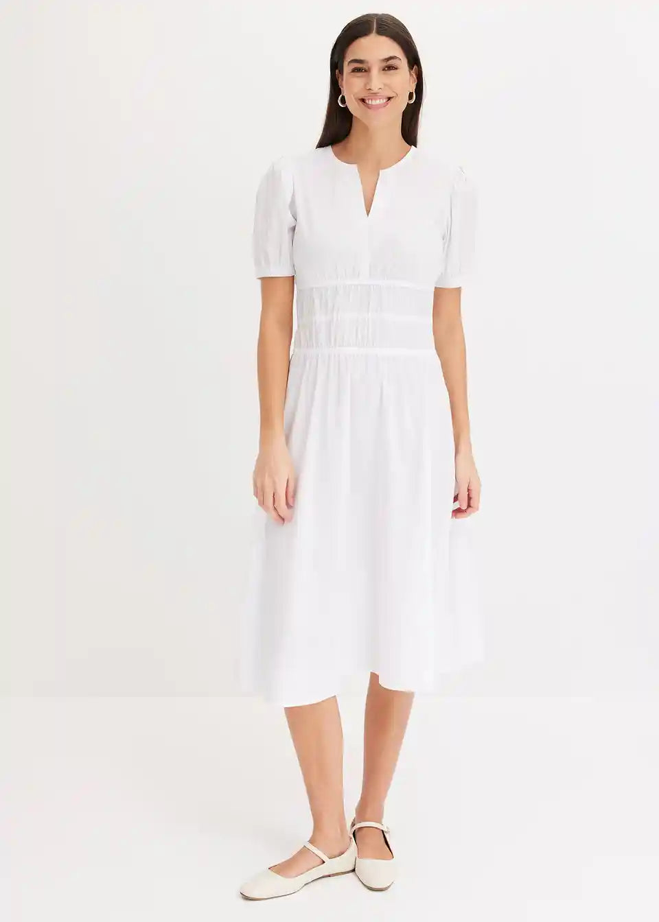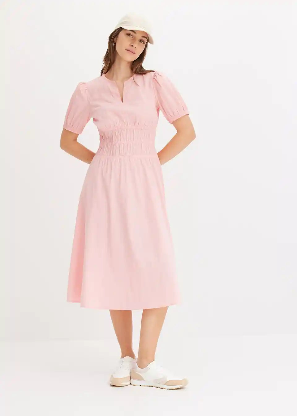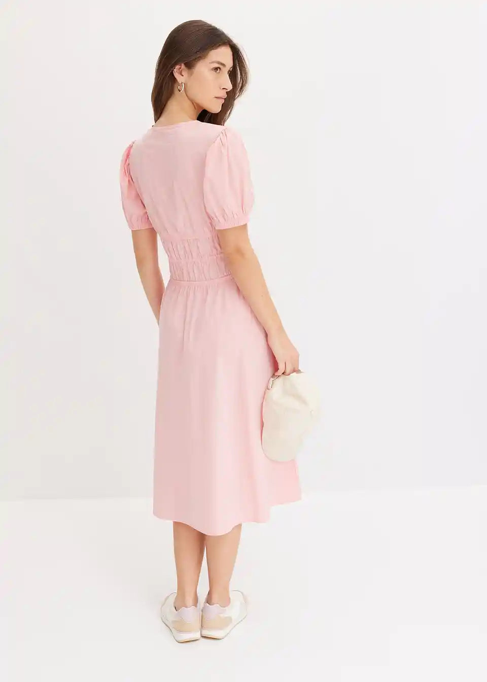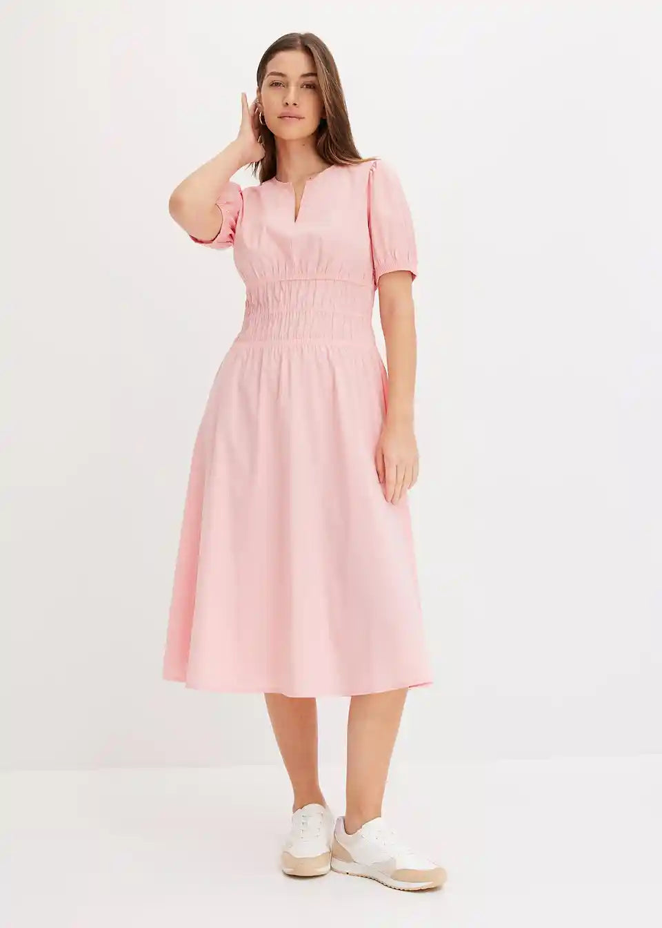Široko krojena haljina s 3/4 puff rukavima i naborima u struku