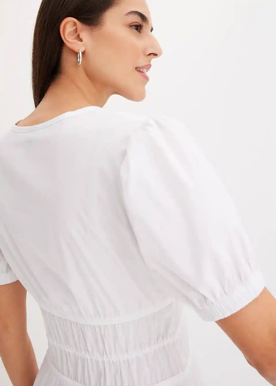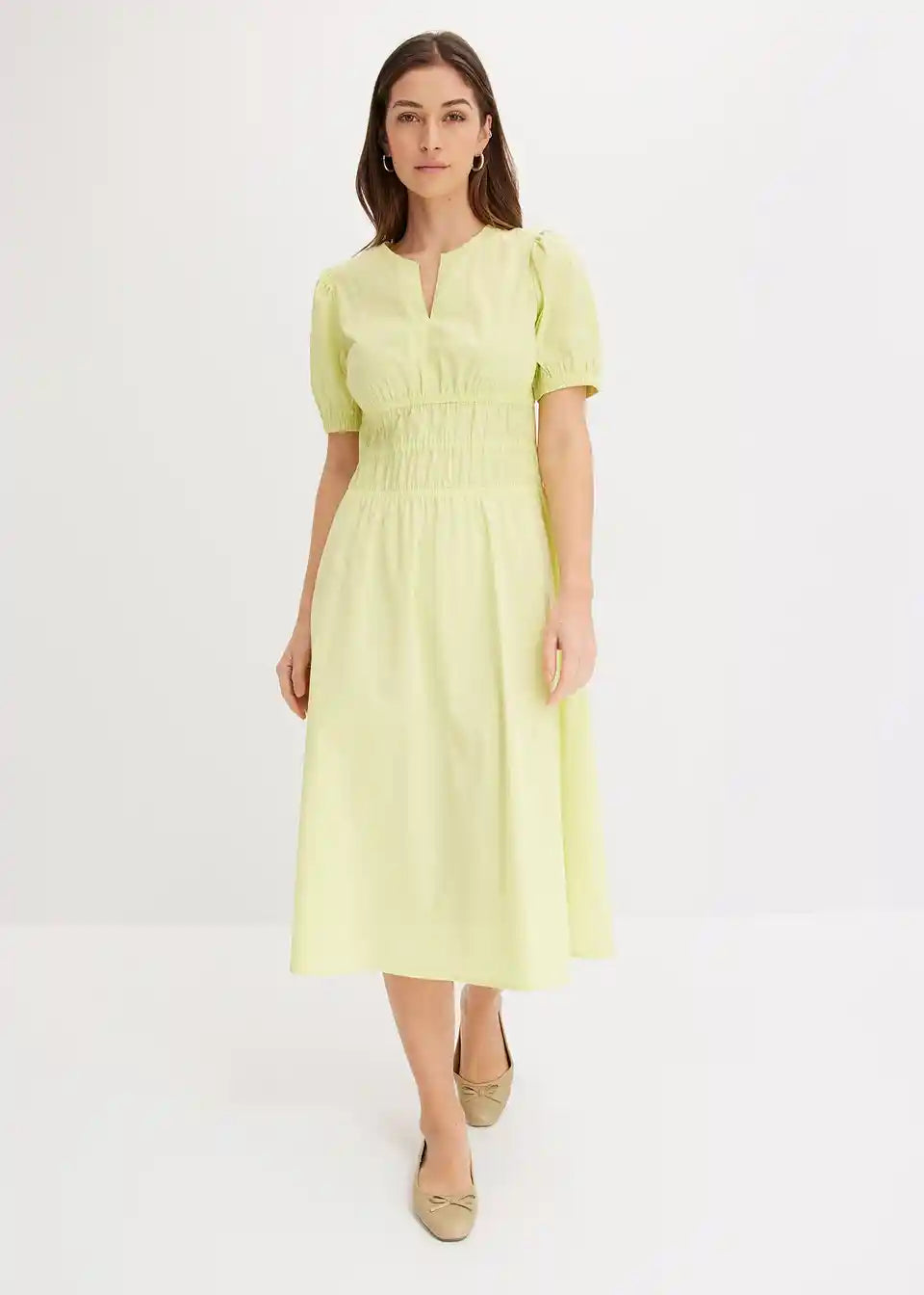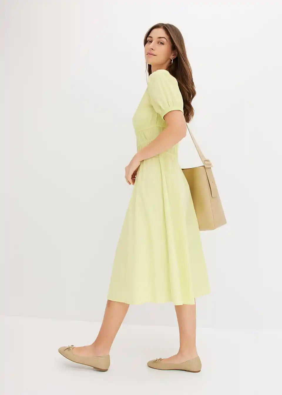 Široko krojena haljina s 3/4 puff rukavima i naborima u struku