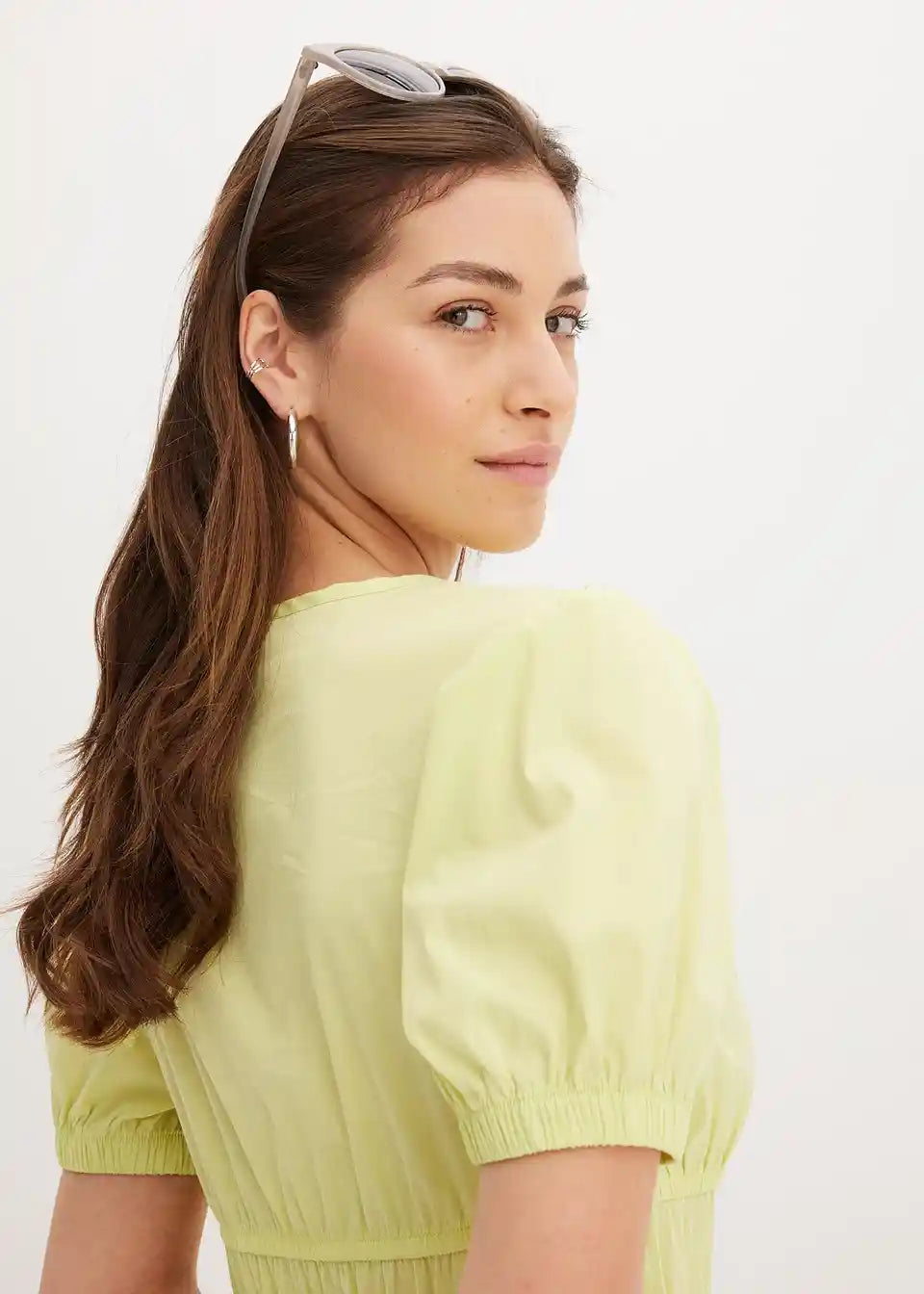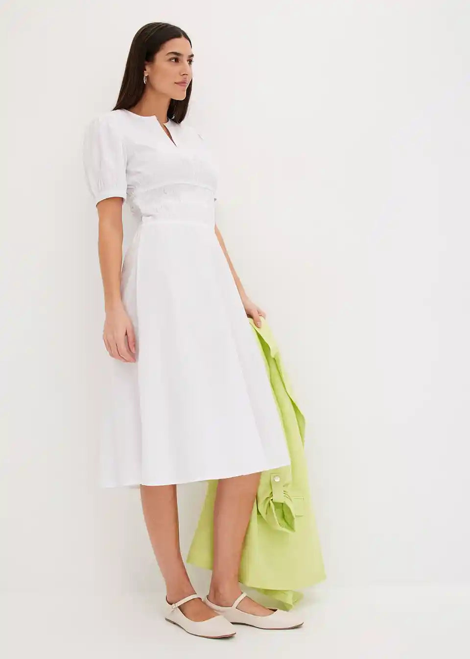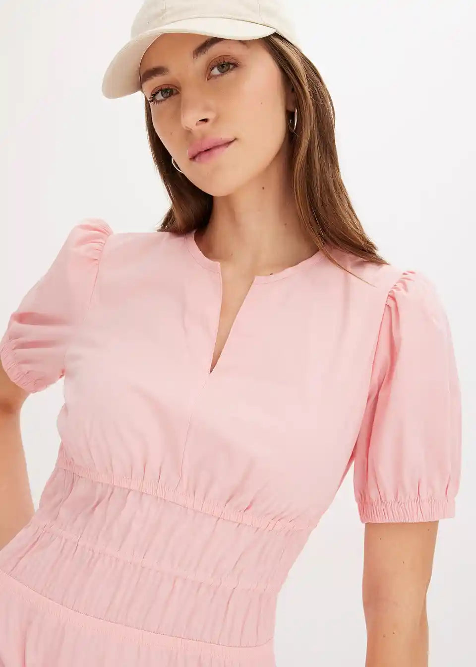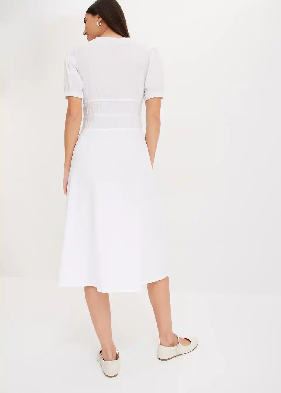 Široko krojena haljina s 3/4 puff rukavima i naborima u struku
