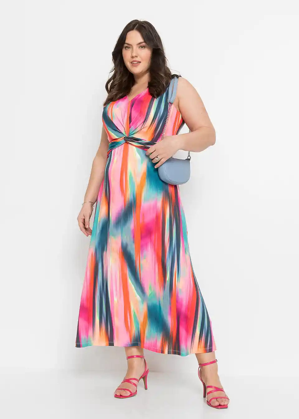 Ljetna haljina s dubokim izrezom i šarenim printom