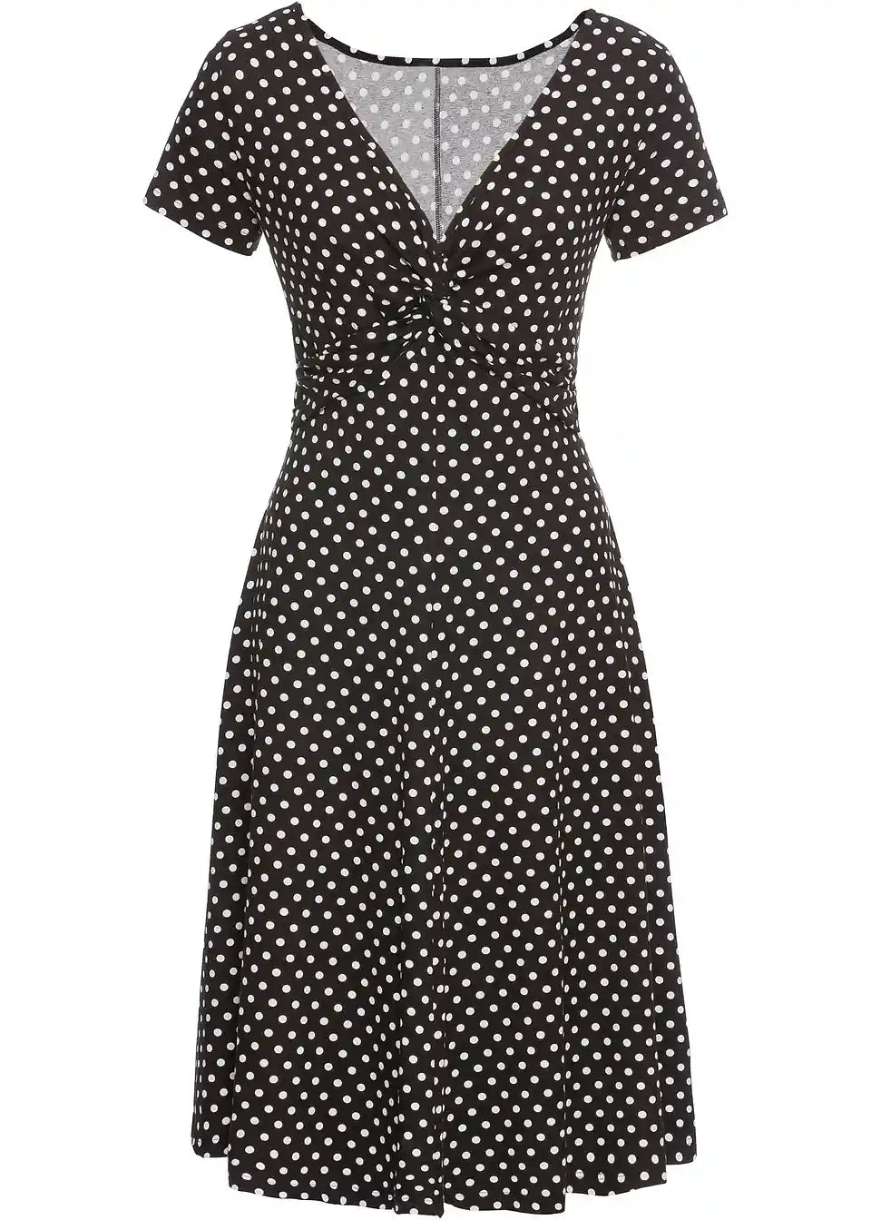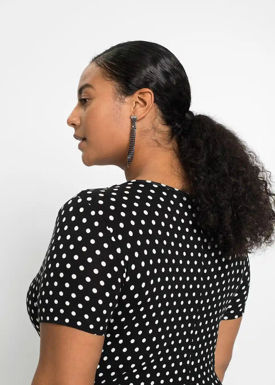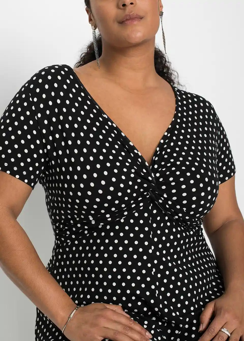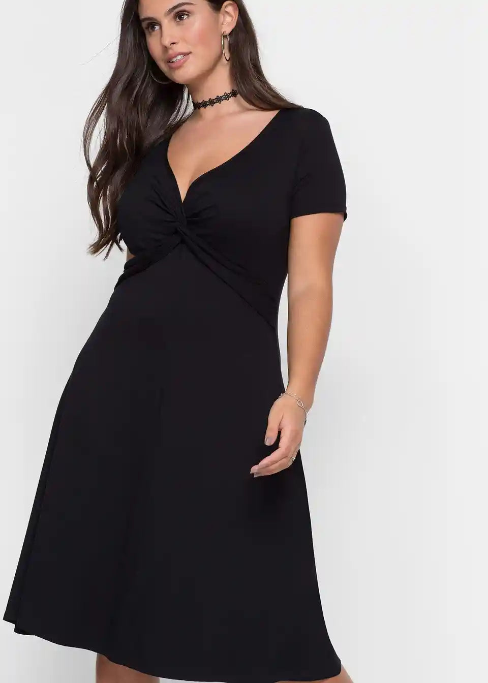 S ovom šarmantnom haljinom s košuljom od BODYFLIRT-a bit ćete idealno odjeveni u toplijim danima. Kratka haljina osvaja prekrasnim čvorom na prednjem dijelu koji zajedno s dubokim V-izrezom privlačno naglašava dekolte. Donji dio haljine do koljena lagano pada i nježno ističe žensku figuru.