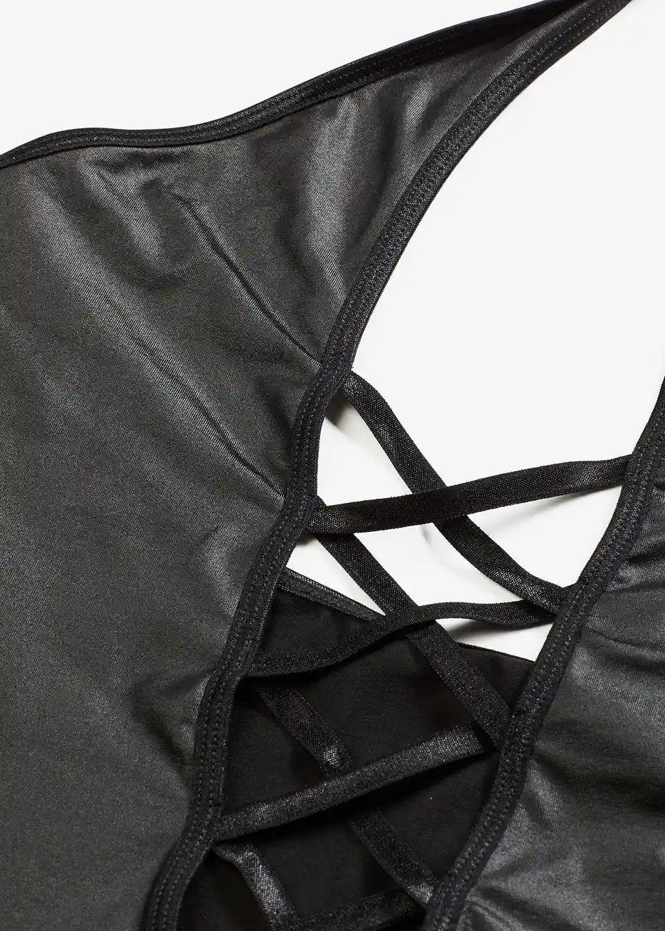 Haljina s Neckholderom od Wetlook materijala s dekorativnim trakama.