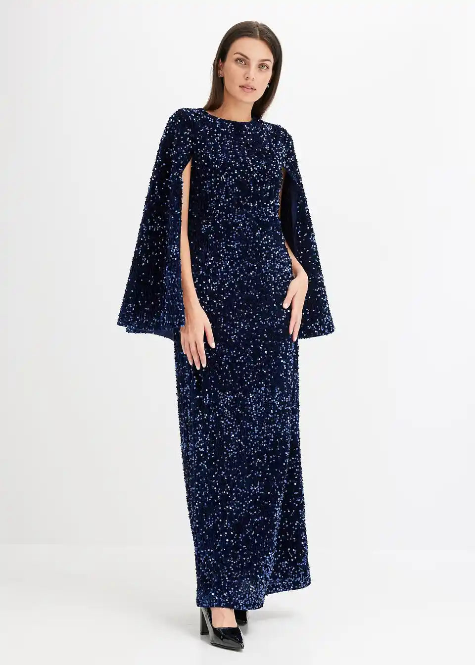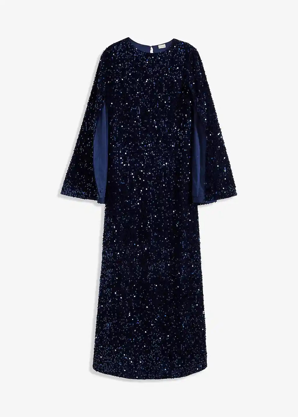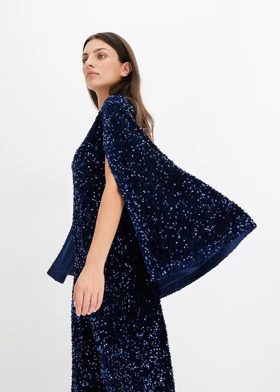 Moderno i ženstveno: Maxi haljina od mekanog baršuna s PAILLETAMA i dugim plašt rukavima