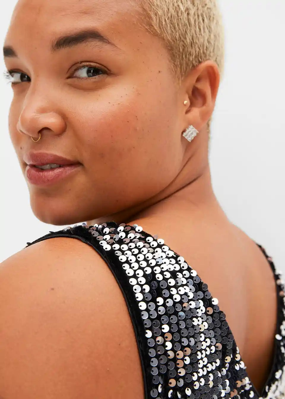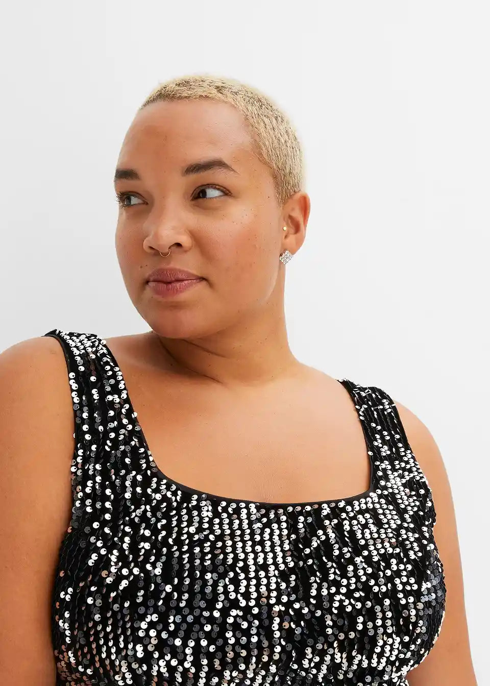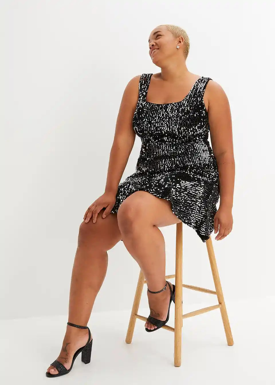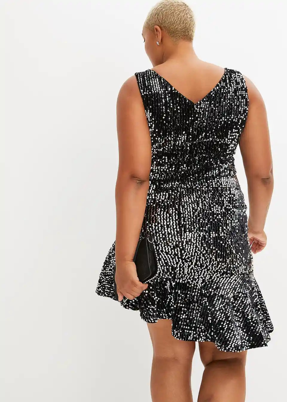 Moderna i ženstvena: Party haljina od baršuna s izvezenim Pailleten. Sa svojim modernim naramenicama i volanom, haljina je savršena za posebne prigode.