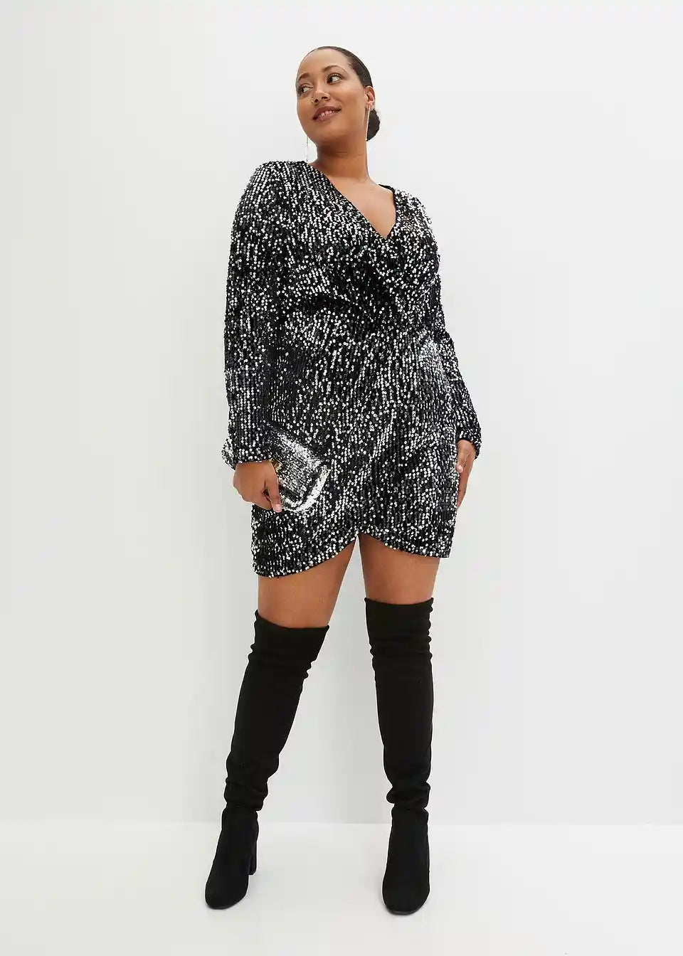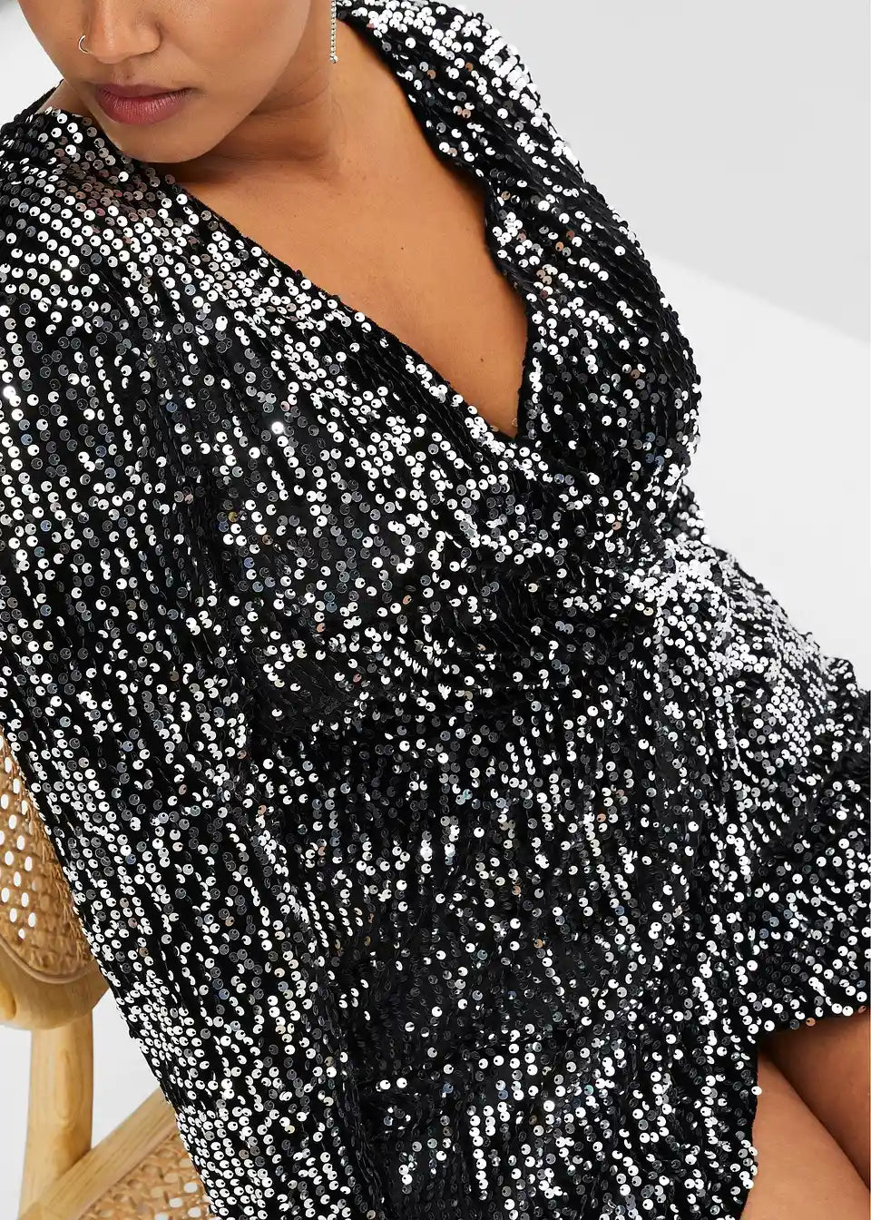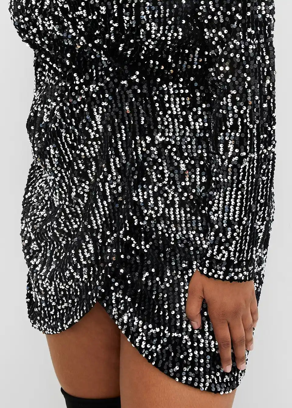 Moderna i ženstvena: Baršunasta haljina sa šljokicama u optici preklopa i s naborima.
