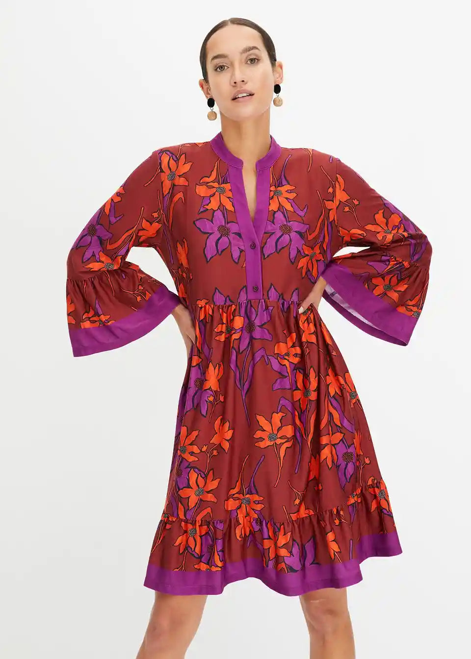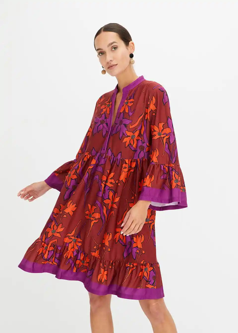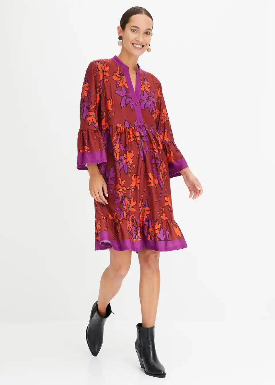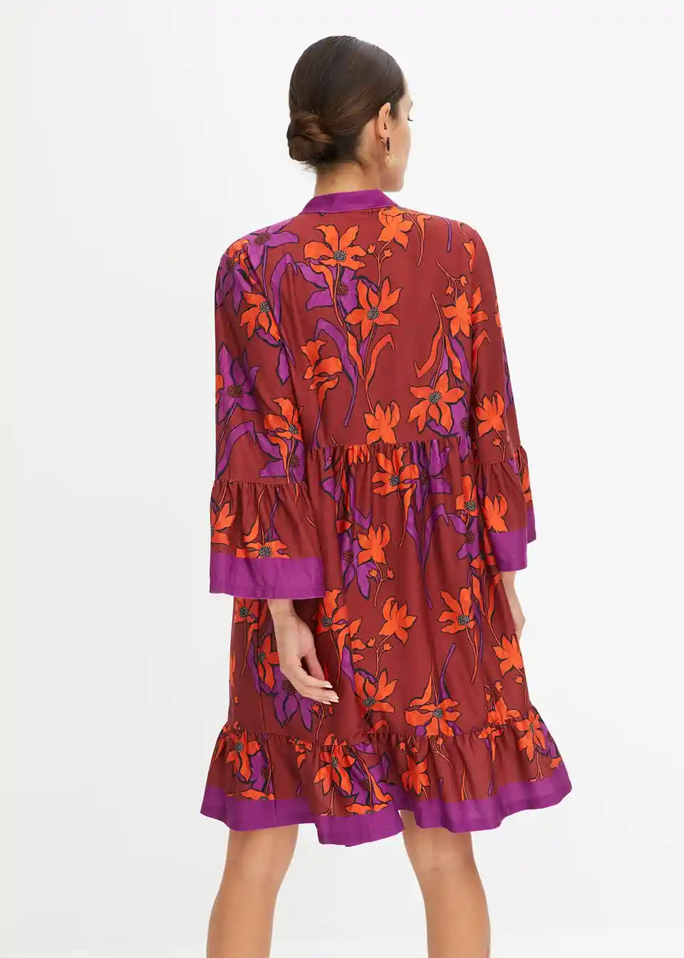 Moderna haljina s širokim suknjom i rukavima s volanima