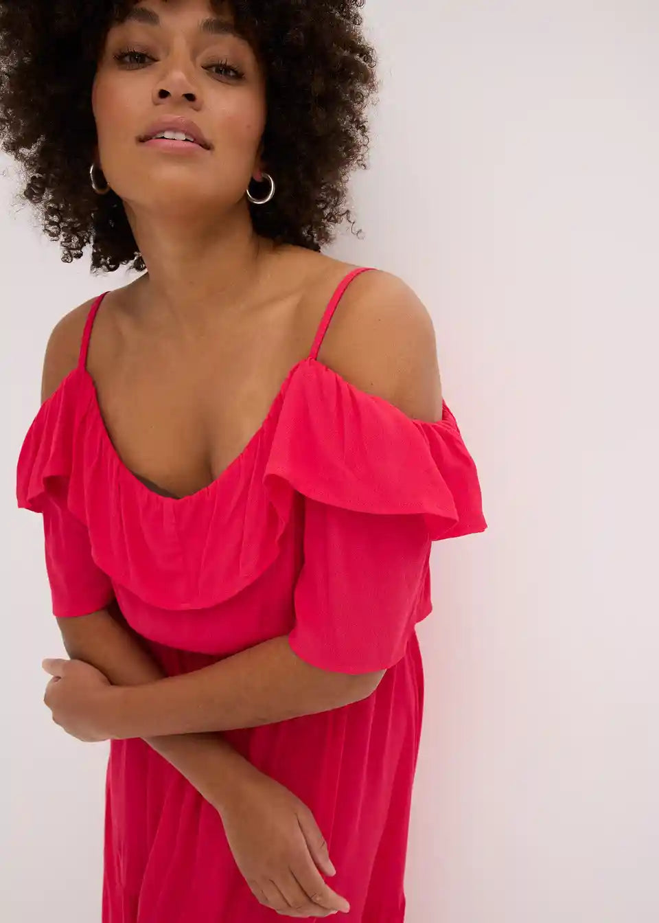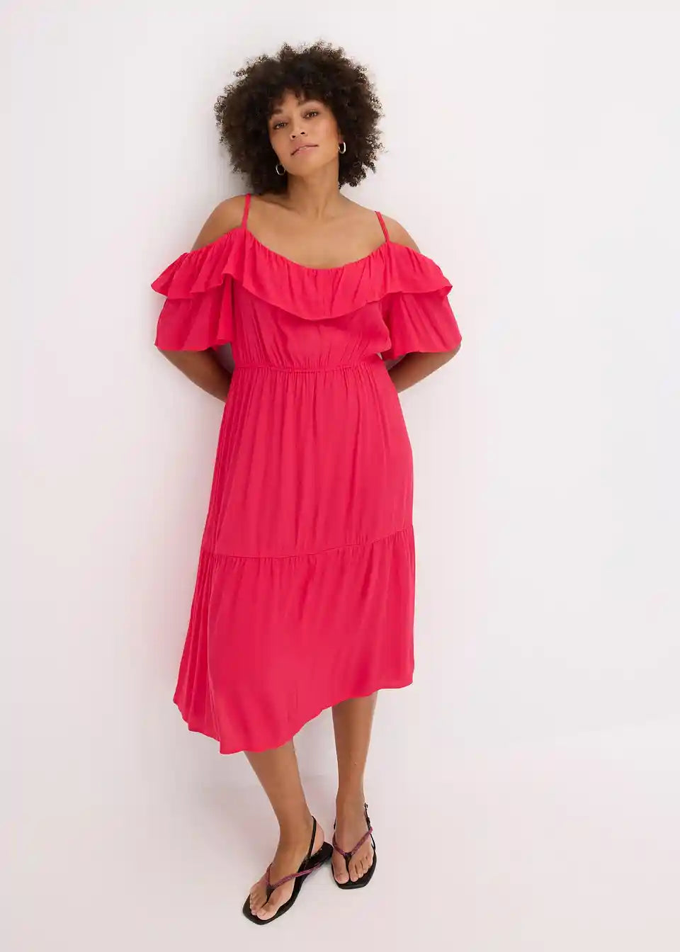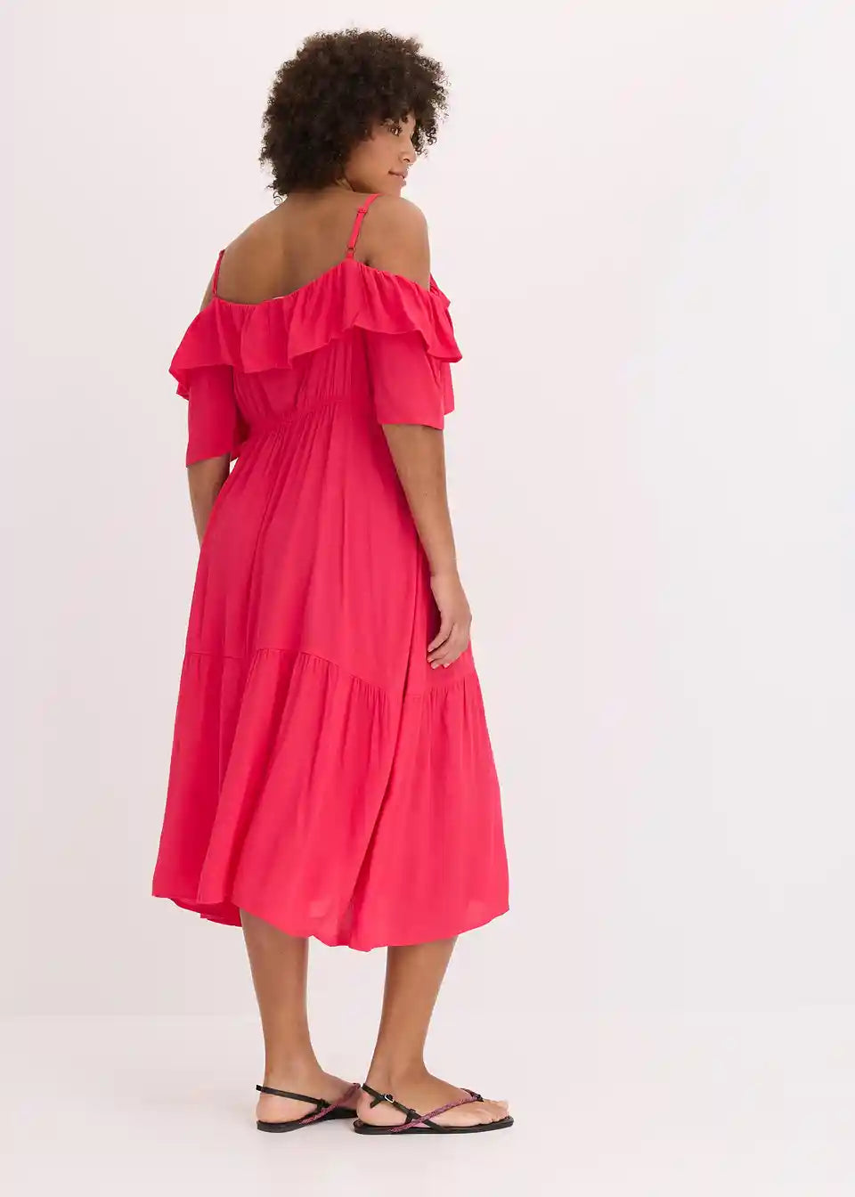 ženstvena haljina sa spaghetti naramenicama od strukturirane viskoze sa šire krojenim rukavima i volanima