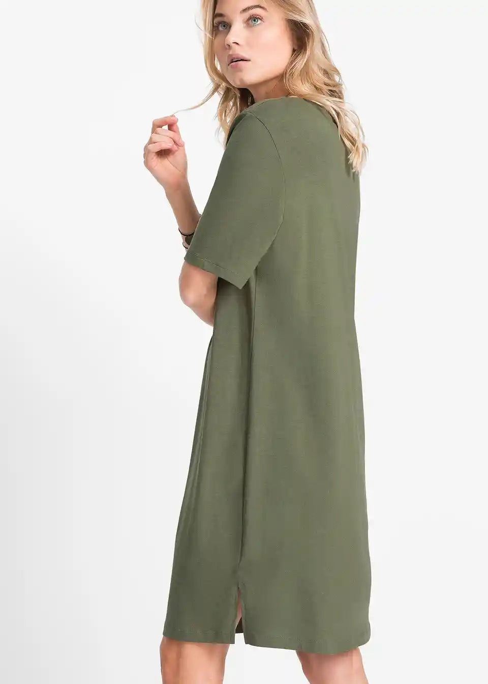 Ležeran kroj kod ove haljine-shirt s kratkim rukavima pruža izražen osjećaj ugode. Na rubu model s okruglim izrezom ima male bočne proreze koji mu daju razigran karakter. Hladan minimalistički izgled postignite s otvorenim sandalama ili espadrilama. Uzoraste tajice, čizme i upečatljiva statement ogrlica daju kratkoj haljini-shirt moderan izgled.
