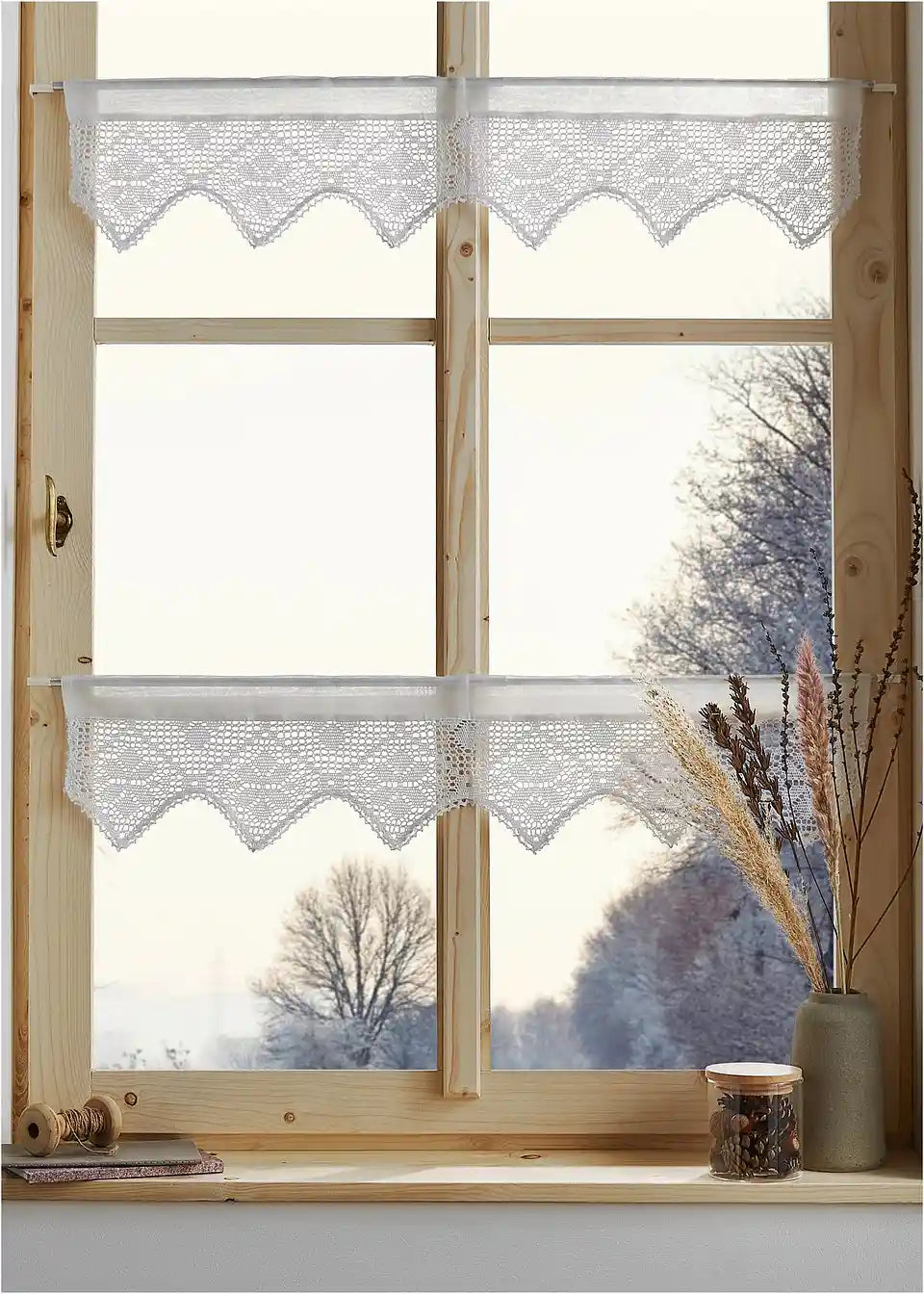 Heklani panel zavjesa za prozore posebno elegantnog izgleda. Transparentna je i uskog kroja, tako da se može koristiti i kao stolni ukras ili u druge svrhe. Sa tunelskom trakom možeš jednostavno urediti ovu zavjesu. Dimenzije tkanine su: 20 cm visina, 90 cm širina.