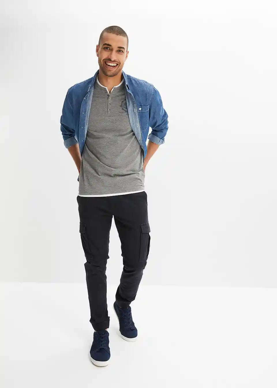 Moderna Henley majica s Layer izgledom u pakiranju od 2 komada