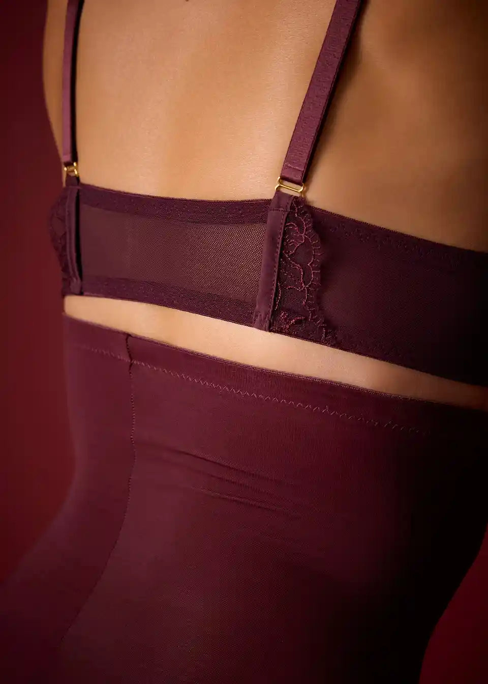 Materijal:gornji materijal: 80% poliamid, 20% elastan, čipka: 90% poliamid, 10% elastan, mrežasta podstava: 77% poliamid, 23% elastan