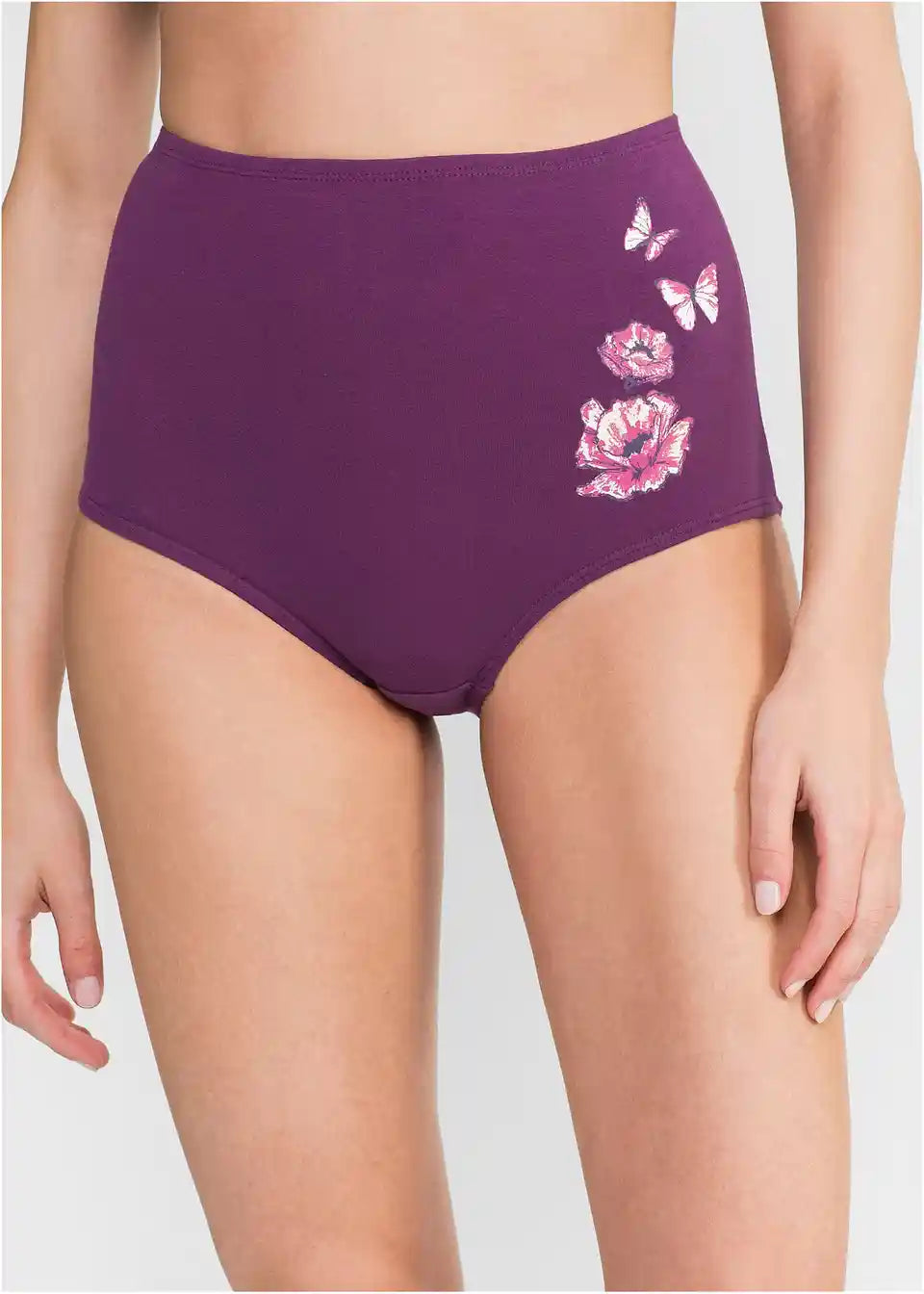 Ovaj slip unosi proljetno raspoloženje u vašu kolekciju donjeg rublja – i to čak pet puta. Tri gaćice su jednobojne u ljubičastoj i crnoj boji, dok ostale dvije svojim printom cvijeća i leptira pružaju romantičan dojam. Dodatnu udobnost ovaj slip visokog struka dobiva zahvaljujući posebno mekoj kvaliteti s ugodnim pamučnim umetkom. Elastični rubovi u struku i na nogavicama dodatno naglašavaju udobnost nošenja i osiguravaju dobro pristajanje.