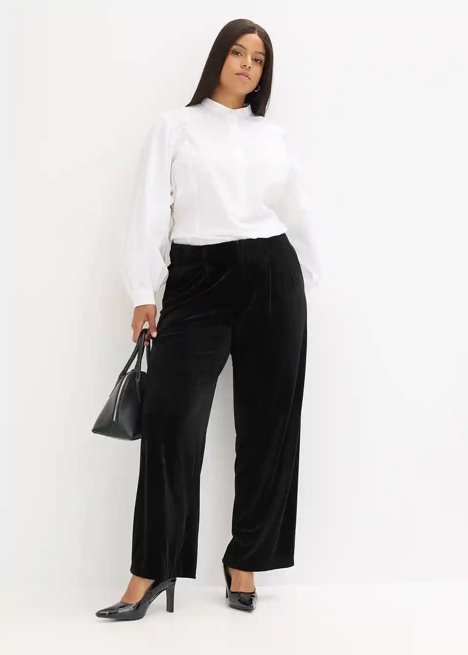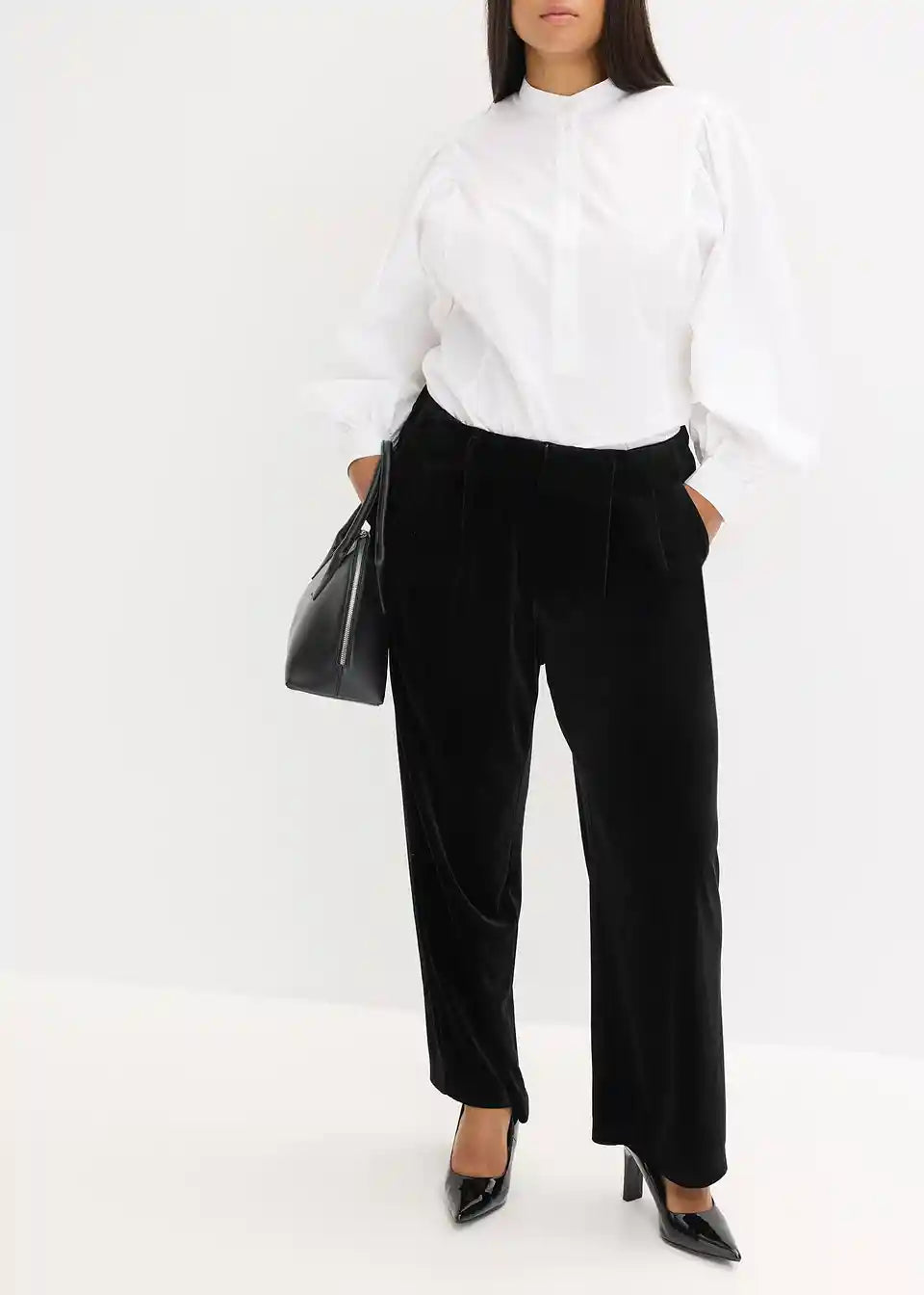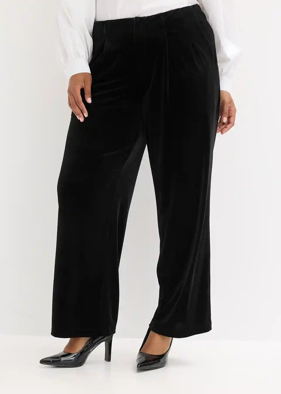 Elegantne široke hlače od baršuna s udobnim pojasom