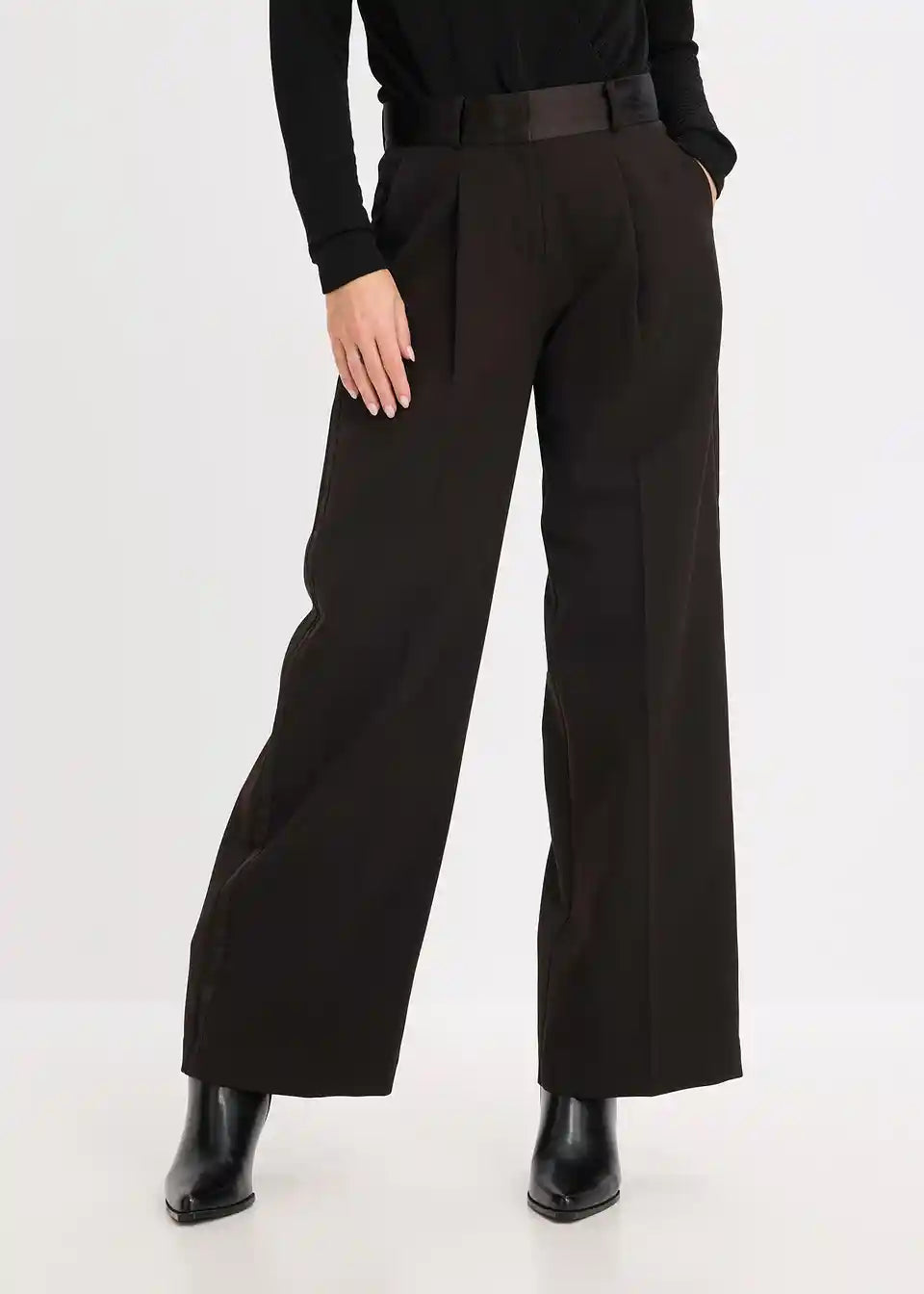 Marlene hlače s pojasom u struku od sjajnog satena