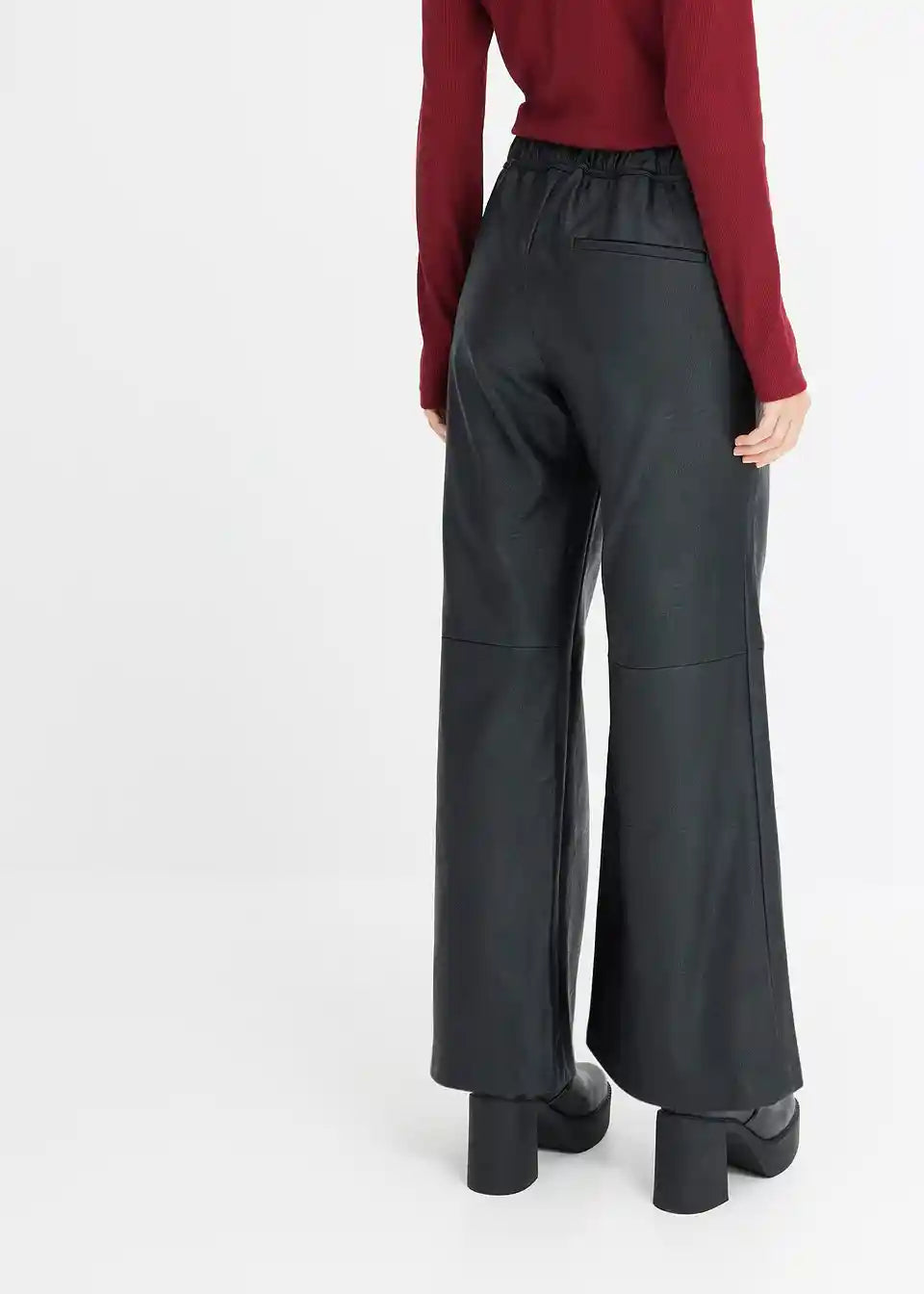 Izdužene hlače od imitacije kože s udobnim pojasom i detaljem za vezanje