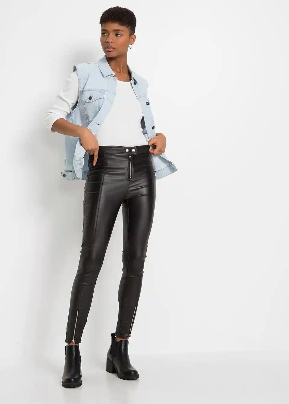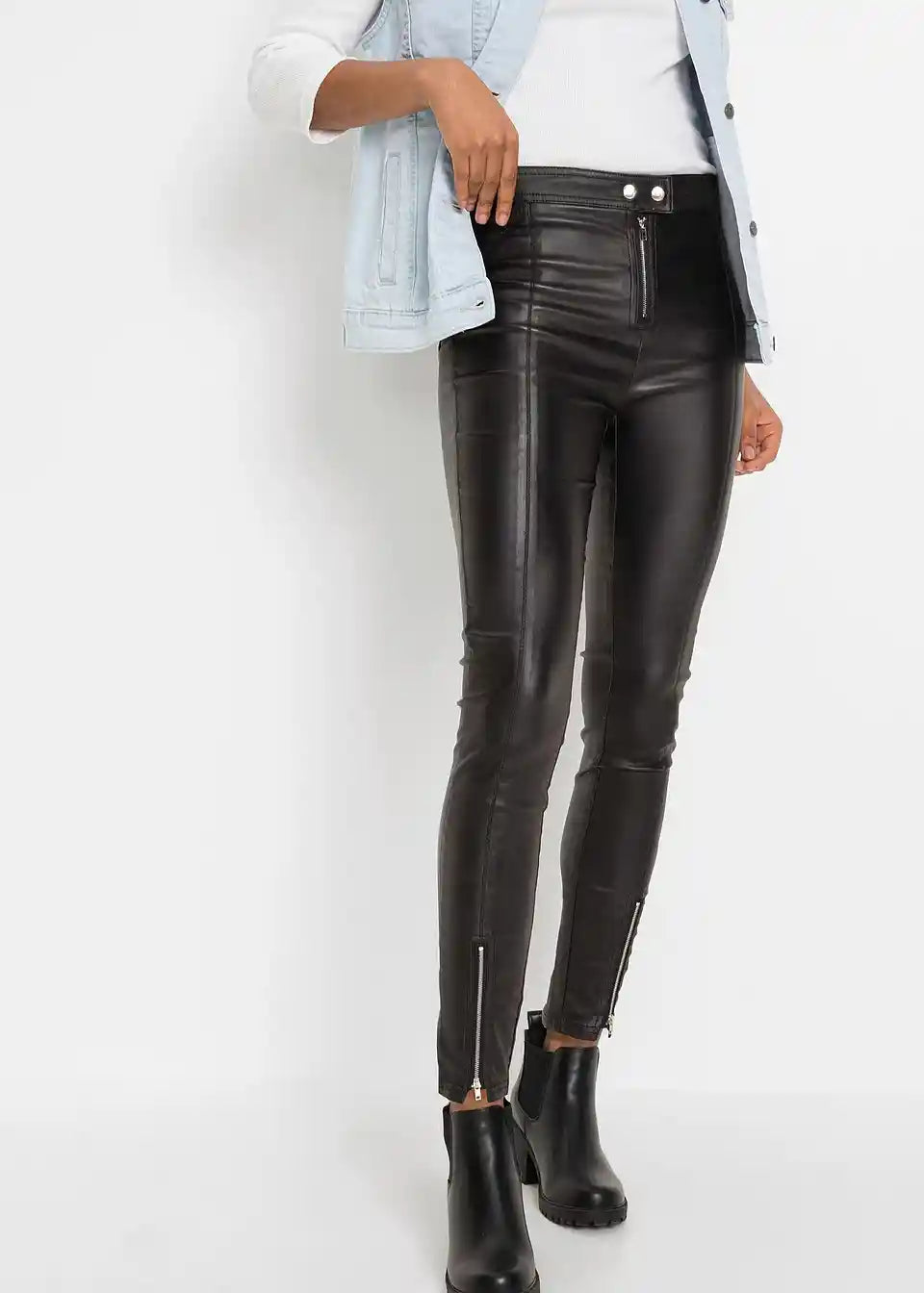 Hlače od imitacije kože s patentnim zatvaračima