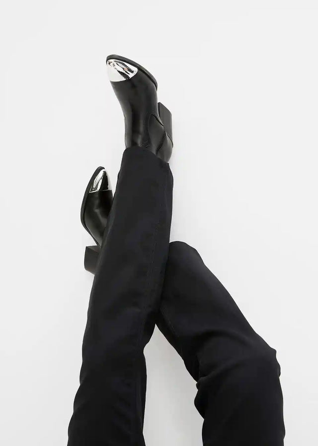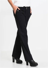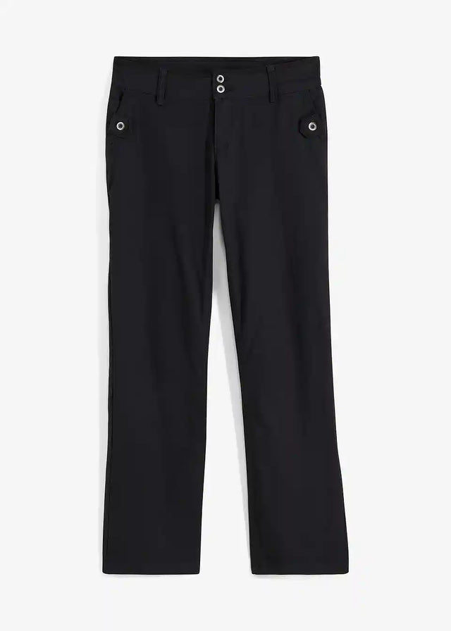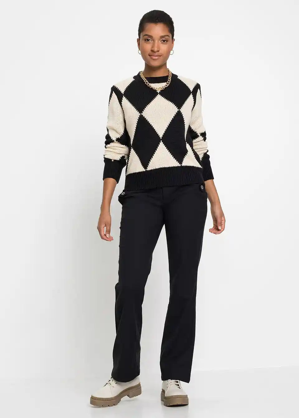 Stylish prugasti uzorak stavlja ove bootcut hlače u prvi plan. Model dobiva cool završnicu s metalno sjajnim gumbima. Oni se pojavljuju u duploj varijanti na struku i ukrašavaju bočne džepove.Hlače s bootcut krojem i prugastim uzorkom zatvaraju se patentnim zatvaračem i oduševljavaju na razne načine. Nošene s košuljom i V-puloverom oduševljavaju jednako kao i u kombinaciji s tenisicama i oversize puloverom.