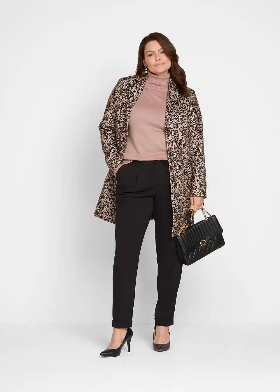Bočni džepovi, peglani nabori, mali zavrnuti rub na nogavicama, elastični pojas s vezicom, unutarnja duljina nogavice cca. 76,5 cm (vel. 42), perivo u perilici rublja.
