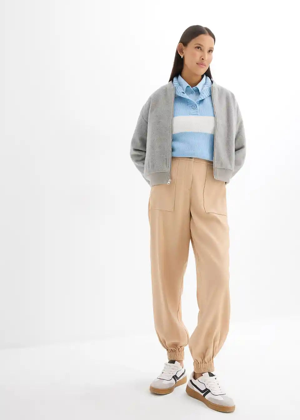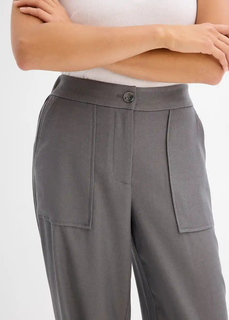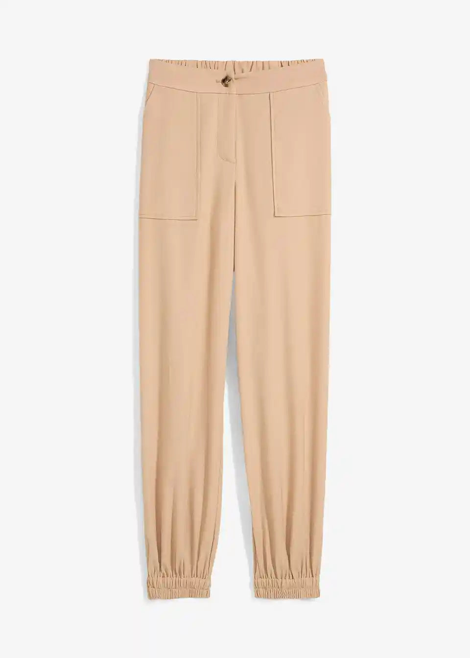 Trendy hlače s elastičnim pojasom i našivenim džepovima